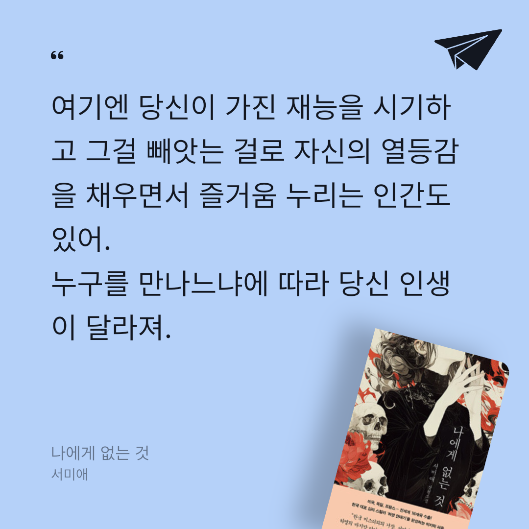 요약서미애 작가의 소설 《나에게 없는 것》은 인간 내면의 결핍과 그로 인해 파생되는 복잡한 심리를 아주 정교하게 파헤치는 심리 스릴러이자 휴먼 드라마입니다. 이 작품은 타인과 비교하며 끊임없이 '나에게 없는 것'을 갈구하는 현대인의 불안을 날카로운 시선으로 조명합니다.