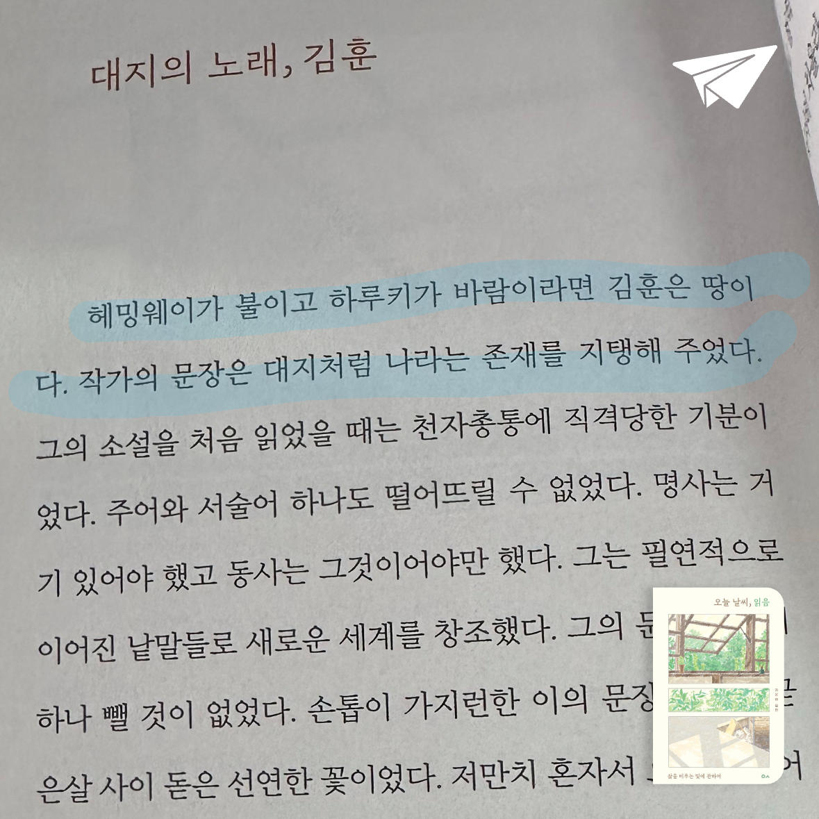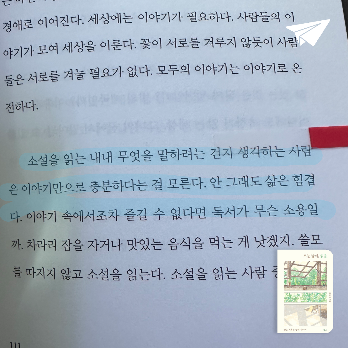 책은 도망칠 수 있는 장소였고, 고해를 건너는 다리였으며 때로 발 디딜 틈이었다. 내게 말 걸어주는 한 사람이었다. 이야기는 나의 세상이었다. 세상이 밀어내도 책은 있었다. 사람들이 떠나도 이야기는 남았다. 영혼에 박힌 작은 가시를 뽑아 이 책을 썼다. 이것은 언제나 나를 비춰주었던 빛에 대한 이야기다.