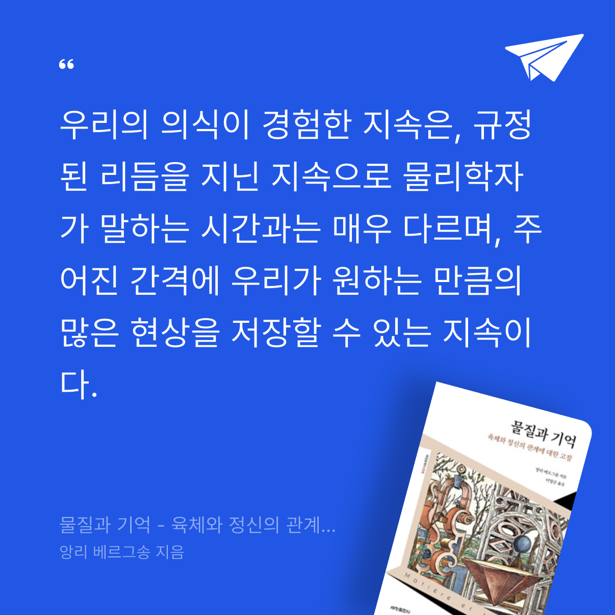 왜냐하면 베르그송이 사유한 시간은 절대 끊기지 않고 나눌 수 없는 지속되는 시간이기 때문이다.