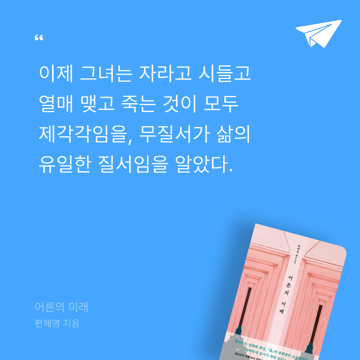 요약편혜영 작가의 첫 짧은소설집인 《어른의 미래》는 우리가 매일 마주하는 일상의 균열과 그 속에서 살아가는 평범한 사람들의 고독을 날카로우면서도 서늘하게 포착해 낸 작품입니다. 이 책은 제목에서 느껴지는 희망적인 기운과는 달리, 어른이라는 이름표를 달고 살아가는 이들이 겪는 막막함과 소통의 부재를 예리한 필치로 그려냅니다. 🖋️