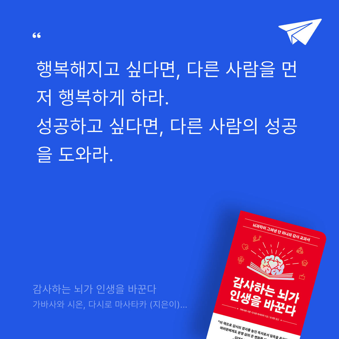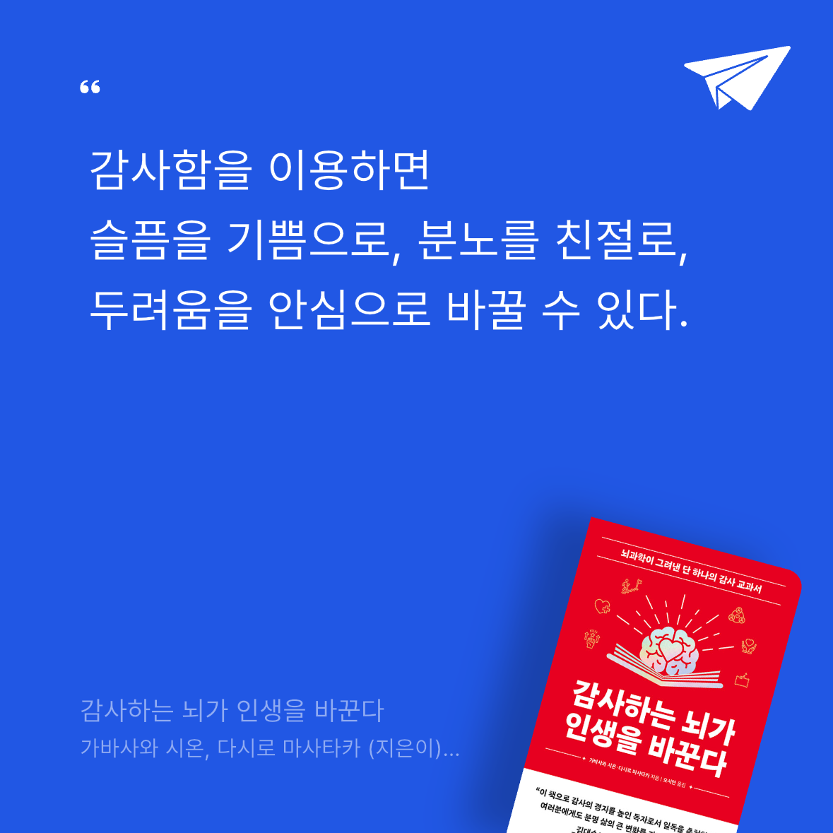 감사를 삶을 긍정하는 태도를 넘어 뇌의 작동 방식을 전면적으로 재설계함으로써 인생을 바꾸는 힘이라고 말한다. 두 저자는 감사의 힘을 그럴듯한 위로로 소비하지 않기 위해, 감사가 삶의 여러 영역에 미치는 효과와 이를 습관화하는 방법을 이 한 권에 오롯이 담아냈다.