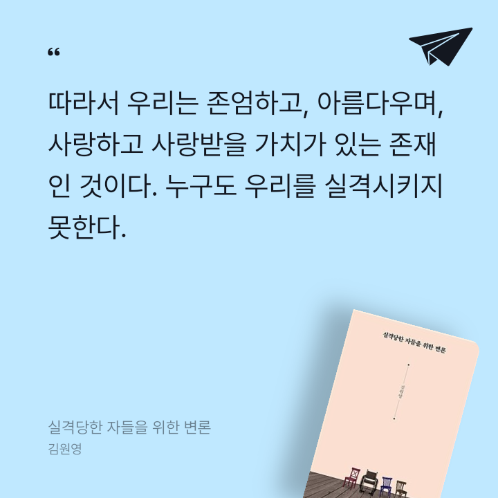 요약실격당한 자들을 위한 변론은 김원영 변호사가 2018년 사계절출판사에서 펴낸 에세이로, 골형성부전증으로 지체장애 1급 판정을 받은 저자가 장애인과 소수자의 존엄성을 변론하며 사회적 낙인과 차별에 맞서는 작품이다. 🦽 서울대 사회학과와 로스쿨을 졸업한 저자는 자신의 삶과 소수자의 경험을 바탕으로, ‘잘못된 삶’이라 낙인찍힌 이들의 존재 가치를 치밀한 논리와 감성적 문체로 증명한다. 책은 ‘잘못된 삶 소송’—장애를 가진 아이의 출생이 손해라는 법적 논쟁—을 모티프로, 태어난 것 자체가