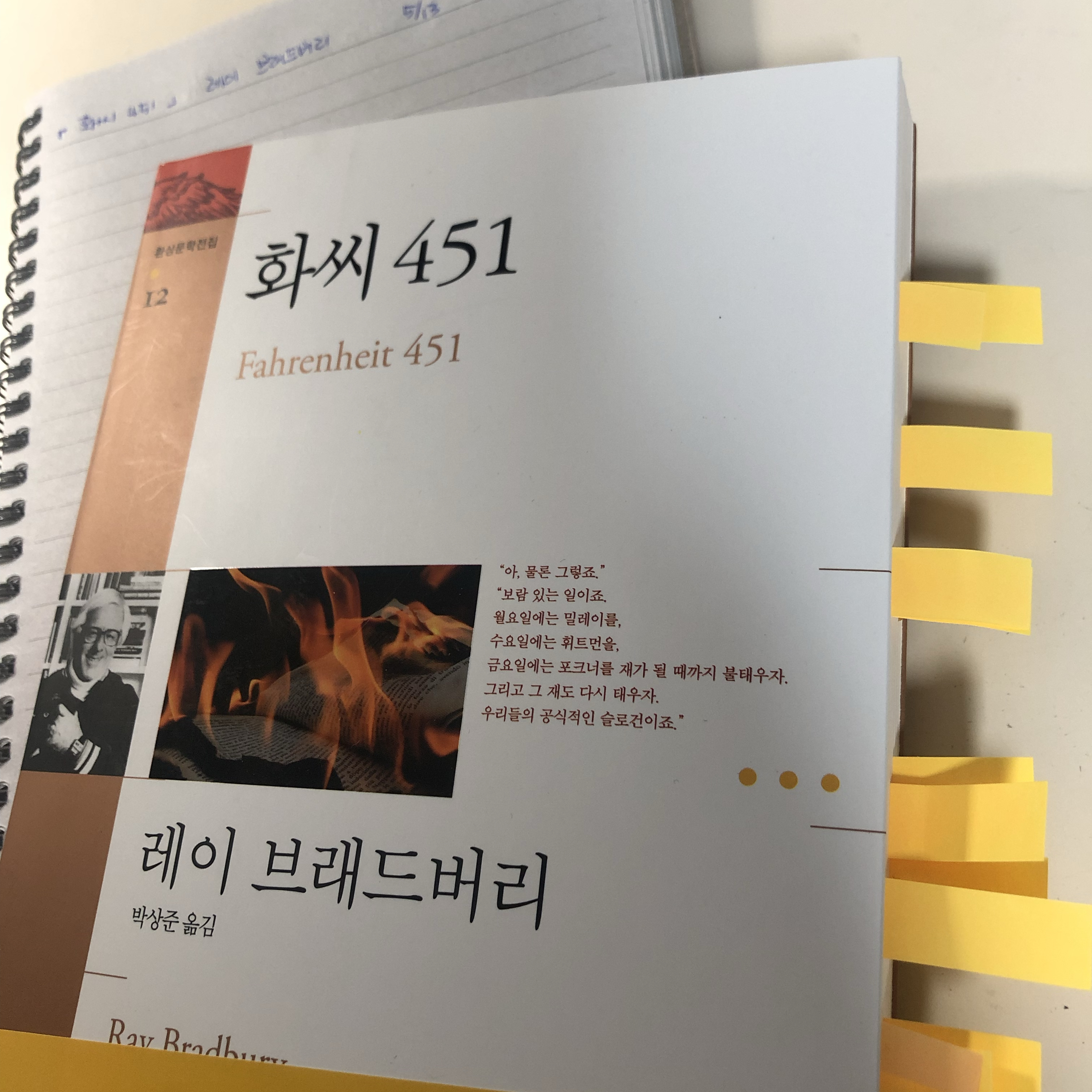 요약레이 브래드버리의 화씨 451은 책이 금지된 디스토피아 사회를 배경으로, 지식과 자유를 향한 인간의 갈망을 그린 SF 소설이다. 📖 이야기는 미래의 미국에서 시작된다. 주인공 가이 몬태그는 소방관으로, 이 세계에서 소방관은 화재를 진압하는 대신 책을 태운다. 화씨 451도는 종이가 타는 온도이며, 몬태그의 임무는 불법 소지된 책을 찾아 불태우는 것이다. 그는 아내 밀드레드와 함께 텔레비전과 라디오로 가득한 집에서 살며, 사회가 요구하는 무감각한 삶을 받아들인다. 사람들은 생각을 억제하는 약물과