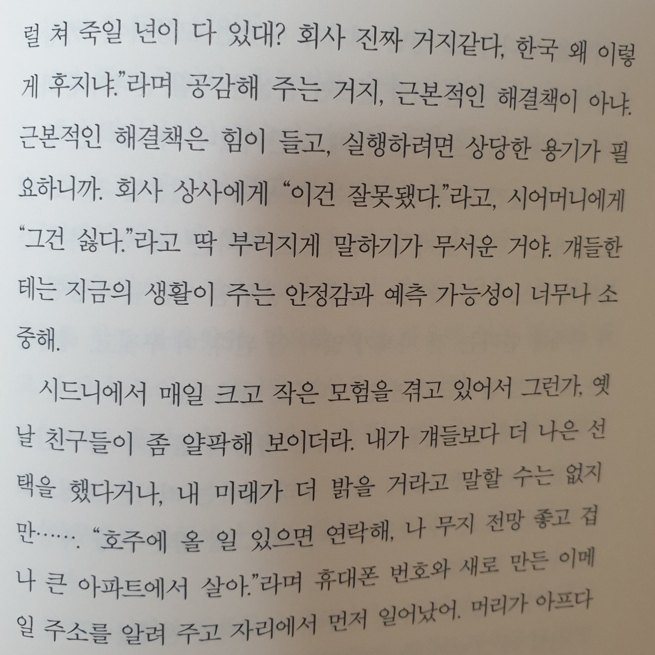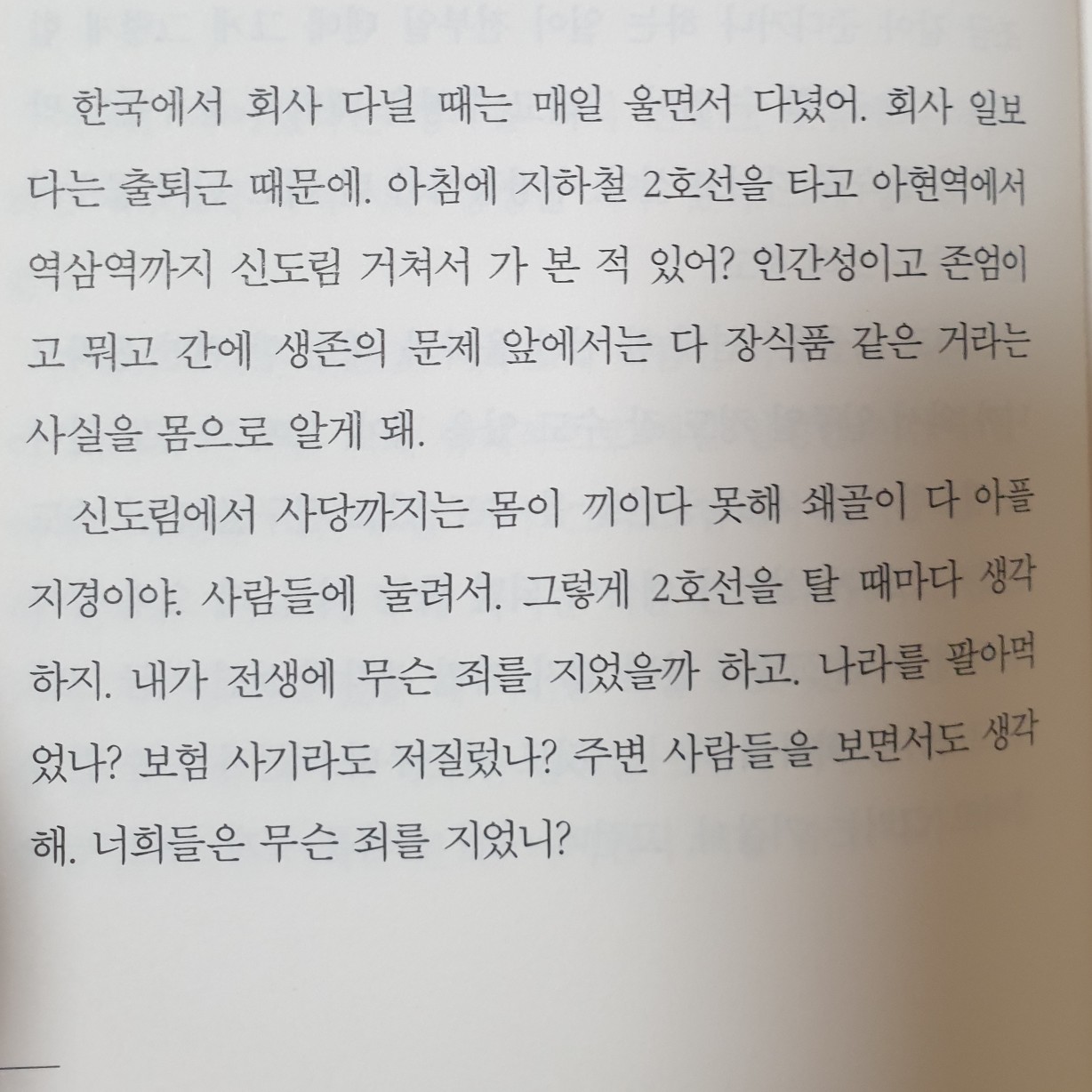 요약‘한국이 싫어서’는 장강명의 장편소설로, 2015년 민음사의 ‘오늘의 젊은 작가’ 시리즈 7번으로 출간되었다. 20대 후반 여성 계나가 한국 사회의 답답함과 미래에 대한 불안을 벗어나기 위해 호주로 이민을 선택한 여정을 그린다. 한겨레문학상, 문학동네작가상 등을 수상하며 한국 문학에 새로운 활기를 불어넣은 장강명은 이 소설에서 ‘헬조선’과 ‘탈조선’이 화두였던 2010년대 청년들의 공감을 자아내는 이야기를 유쾌하면서도 날카롭게 풀어낸다. 대화체로 전개되는