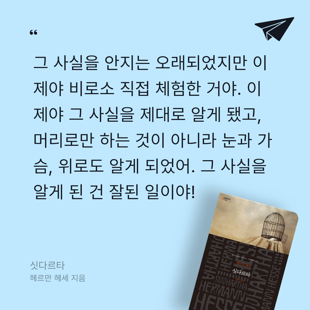 요약『싯다르타』는 헤르만 헤세의 대표적인 철학 소설로, 1922년에 출간되었다. 한국에서는 2019년 문학동네에서 김영옥 번역으로 출간되었다(ISBN: 9788954654418). 1946년 노벨문학상을 수상한 헤세는 이 작품에서 고대 인도를 배경으로, 한 남자의 영적 여정을 통해 삶의 의미와 깨달음을 탐구한다. 주인공 싯다르타는 부처(석가모니)와 동시대를 살아가는 브라만의 아들로, 부, 명예, 지식이 보장된 삶을 버리고 진정한 자아와 우주의 본질을 찾기 위해 떠난다. 소설은 싯다르타의 고행, 쾌락, 사랑,