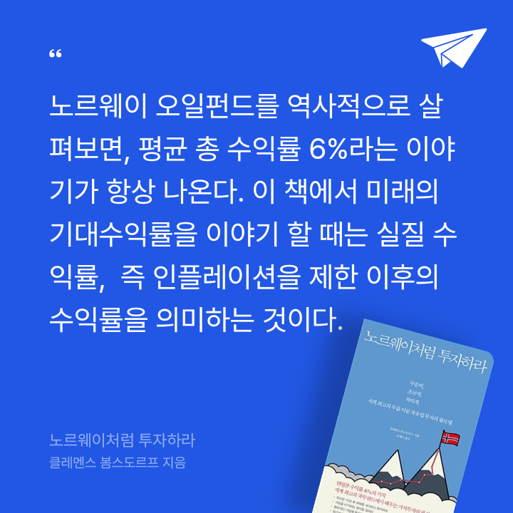 노르웨이는 자원에서 얻은 부를 낭비하지 않기 위해 ‘오일펀드’를 만들었고 거기에 석유 수익에서 나오는 전액을 투자한다. 이들의 결정이 대단한 것은 시장 상황에 개의치 않고, 폭락과 폭등을 무시한 채, 정해진 때에 투자를 실행한다는 것이다. 장기적인 안목을 가지고 현재를 즐기면서 투자하는 것. 그것이 바로 노르웨이 투자공식이다.