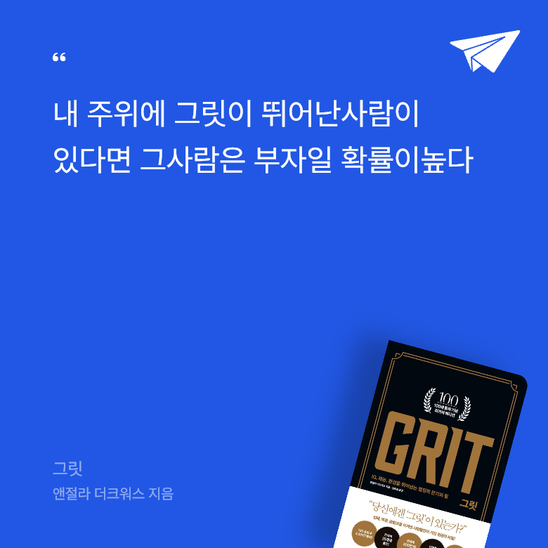 2016년 출간된 이래 교육, 산업, 방송할 것 없이 많은 사람들에게 주목을 받으며 신드롬을 일으켰던 책 《그릿》이 100쇄를 돌파했다. 100쇄 기념 특별판으로 출간된 이번 책은 고급스러운 블랙 커버에 금박을 가미해 소장 가치를 높였다.