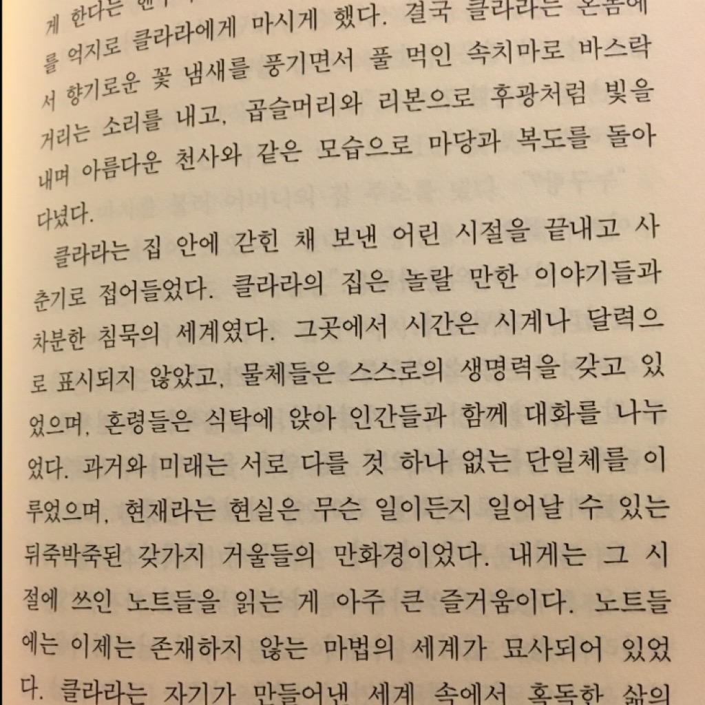 라틴 아메리카의 대표적 작가 이사벨 아옌데의 첫 번째 소설. 혁명과 독재로 얼룩진 칠레의 역사를 한 가문의 일대기를 통해 기록했다. 마르께스의 <백년동안의 고독>처럼 처음과 끝이 이어지는-시작과 결말이 같은 이야기이며, 반복과 순환의 고리 속에서 굴러가는 인간의 역사를 매끈하게 그려냈다.