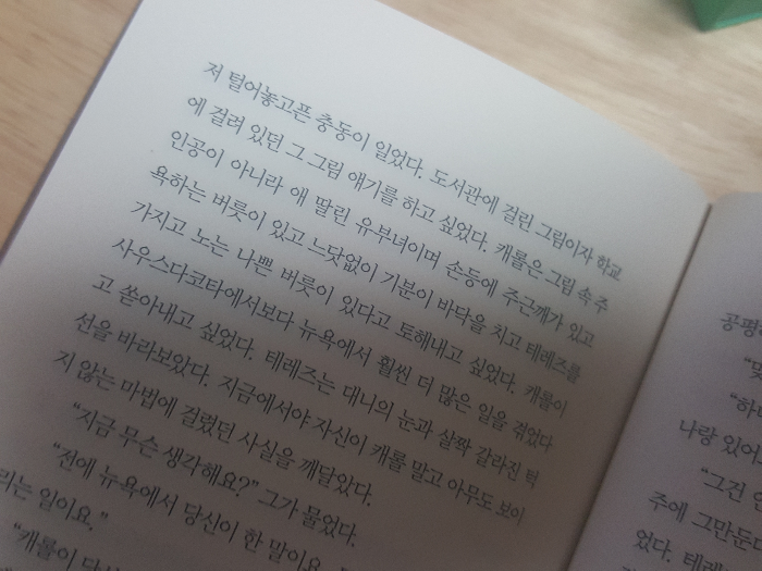 요약『캐롤』은 퍼트리샤 하이스미스가 1952년에 발표한 소설로, 금지된 사랑과 그로 인한 갈등을 섬세하게 그린 작품이다. 📖 원래 『소금의 대가』(The Price of Salt)라는 제목으로 출간되었으며, 작가가 동성애를 주제로 한 이 소설을 필명 클레어 모건으로 발표한 이유는 당시 사회적 분위기 때문이었다. 이야기는 1940년대 후반 뉴욕을 배경으로 시작된다. 주인공 테레즈 벨리벳은 열아홉 살의 무대 디자이너 지망생으로, 크리스마스 시즌에 프랭크 백화점에서 임시 점원으로 일한다. 그녀는 꿈을