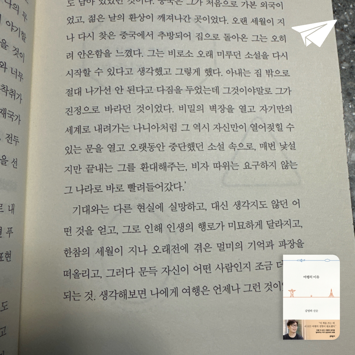 요약김영하의 [예약판매] 여행의 이유는 소설가이자 열정적인 여행자인 저자가 오랜 세월 여행을 통해 느낀 감정과 사유를 아홉 개의 에세이로 풀어낸 산문집이다. 🗺️ 이 책은 단순한 여행담이 아니라, 여행을 매개로 인간, 글쓰기, 타자, 삶의 의미를 탐구하는 철학적 여정에 가깝다. 김영하는 여행을 “내가 누구인지 잠시 잊기 위해 떠나는 것”이라 정의하며, 일상의 후회와 불안에서 벗어나 현재에 몰입하게 하는 여행의 본질을 조명한다. 그의 유쾌하고 날카로운 문체는 개인적