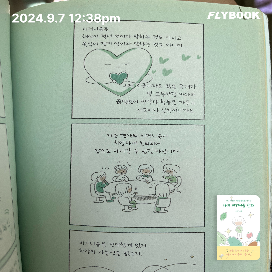 요약*나의 비거니즘 만화 (어느 비건의 채식&동물권 이야기)*는 보선이 2020년 푸른숲에서 출간한 만화 에세이로, ISBN 9791156758075, 232쪽 분량의 이 책은 비건인 저자가 트위터 해시태그 “#나의_비거니즘_일기”에서 영감을 받아 비거니즘의 가치관과 일상을 귀엽고 따뜻한 그림체로 풀어낸다. 📖 보선은 인스타툰 작가로, 적적한 공룡 만화, 평범을 헤매다 별에게로를 통해 타자의 아픔에 공감하는 이야기를 전해왔다. 이 책은 비거니즘을 단순한