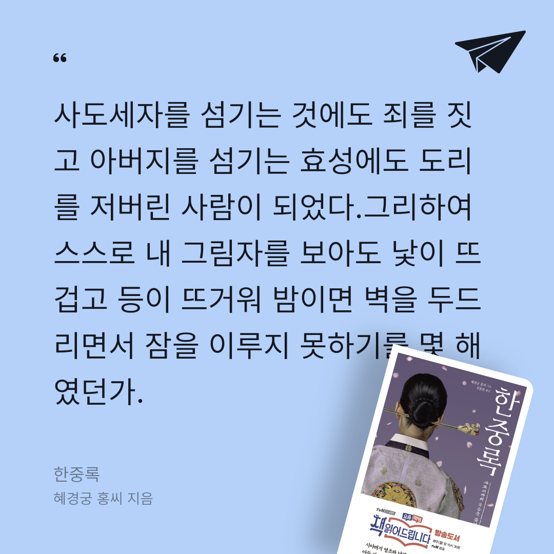 조선 제21대 왕 영조의 둘째 아들인 사도세자의 빈으로 있다가 아들 정조가 즉위하면서 혜경궁으로 높여진 홍씨가 저술한 자전적인 회고록으로, 사도세자의 죽음을 둘러싸고 벌어지는 궁중의 음모와 갈등이 그대로 드러난 궁중문학의 진수라 할 수 있다.