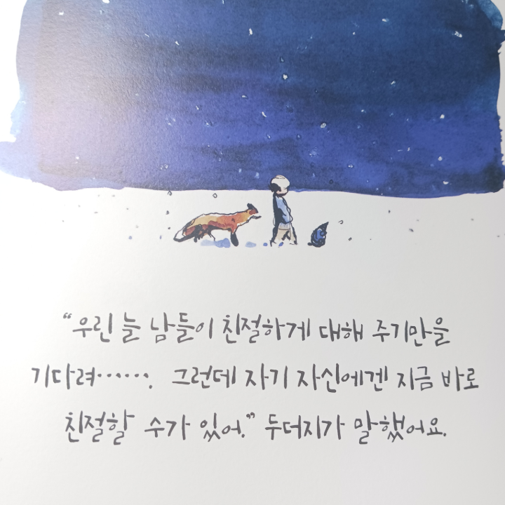 글과 그림의 조화가 아름다운 그림책이기도 이야기책이기도 하다. 밀레니얼들을 위한 삶의 지침을 담고 있는 철학책으로 분류되기도 한다. 그러나 무엇보다 삶에 대한 깊은 성찰을 아름다운 그림과 진실한 글로 드러내는, 모든 연령대의 독자를 아우르는 책이다.
