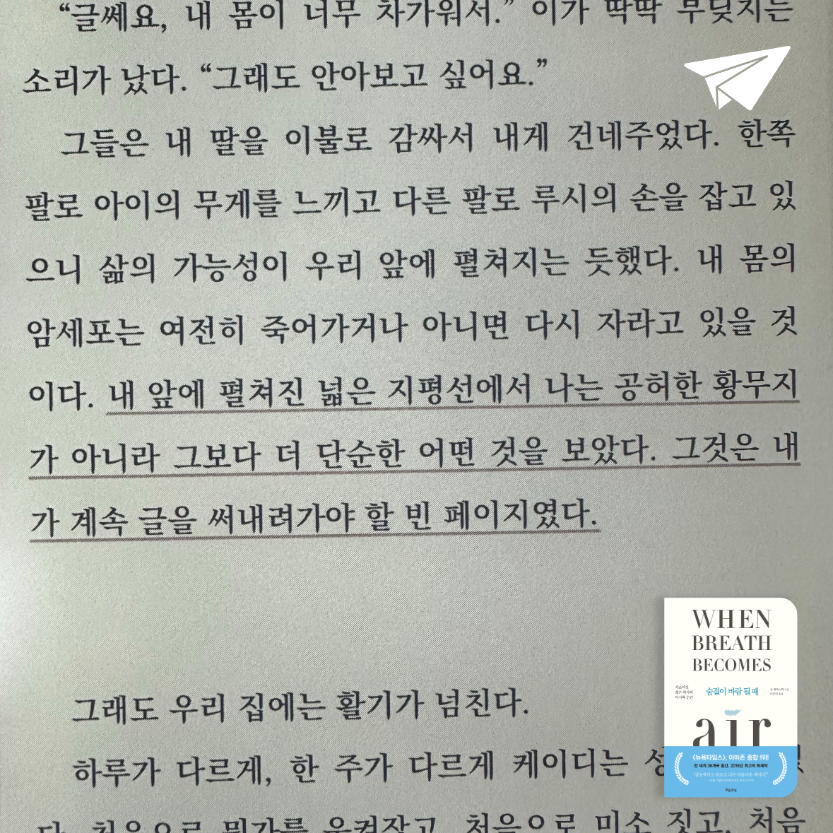 요약『숨결이 바람 될 때』는 신경외과 의사 폴 칼라니티가 서른여섯의 나이에 폐암 말기 진단을 받고 남긴 마지막 2년의 기록이다. 📖 책은 1부 ‘나는 아주 건강하게 시작했다’와 2부 ‘죽음이 올 때까지 멈추지 마라’, 그리고 아내 루시 칼라니티의 에필로그로 구성된다. 1부는 폴의 어린 시절부터 의사가 되기까지의 여정을 담는다. 그는 스탠퍼드 대학에서 영문학과 생물학을 전공하고, 문학과 철학에 깊은 관심을 가졌다. 의학이 인간의 삶과 죽음, 철학과 과학의 교차