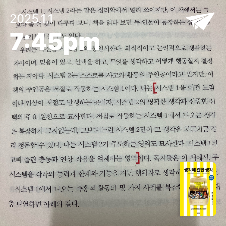 p111. "기분은 시스템1에 분명한 영향을 미쳐서, 마음이 불편하고 언짢을 때는 직관도 작동하지 않는다."