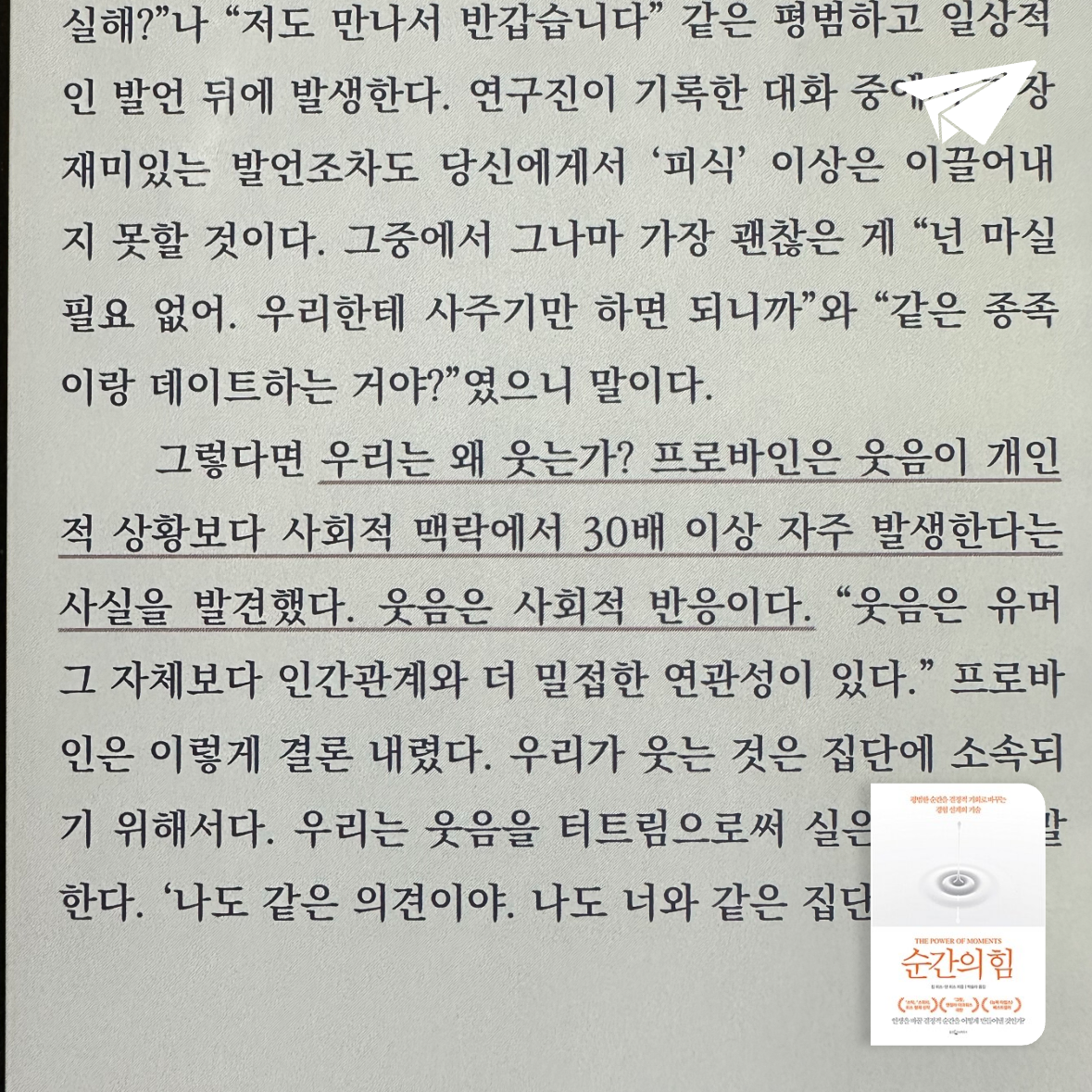 요약순간의 힘: 평범한 순간을 결정적 기회로 바꾸는 경험 설계의 기술은 칩 히스와 댄 히스 형제가 2018년 7월 13일 웅진지식하우스를 통해 박슬라 번역으로 출간한 자기계발서로, 평범한 순간을 기억에 남는 결정적 경험으로 바꾸는 방법을 탐구한다(ISBN: 9788901225043). 📖 저자들은 『스틱』, 『스위치』로 조직행동론과 변화 관리의 대가로 인정받았으며, 이 책에서는 수많은 사례와 심리학 연구를 바탕으로 ‘결정적 순간’을 설계하는