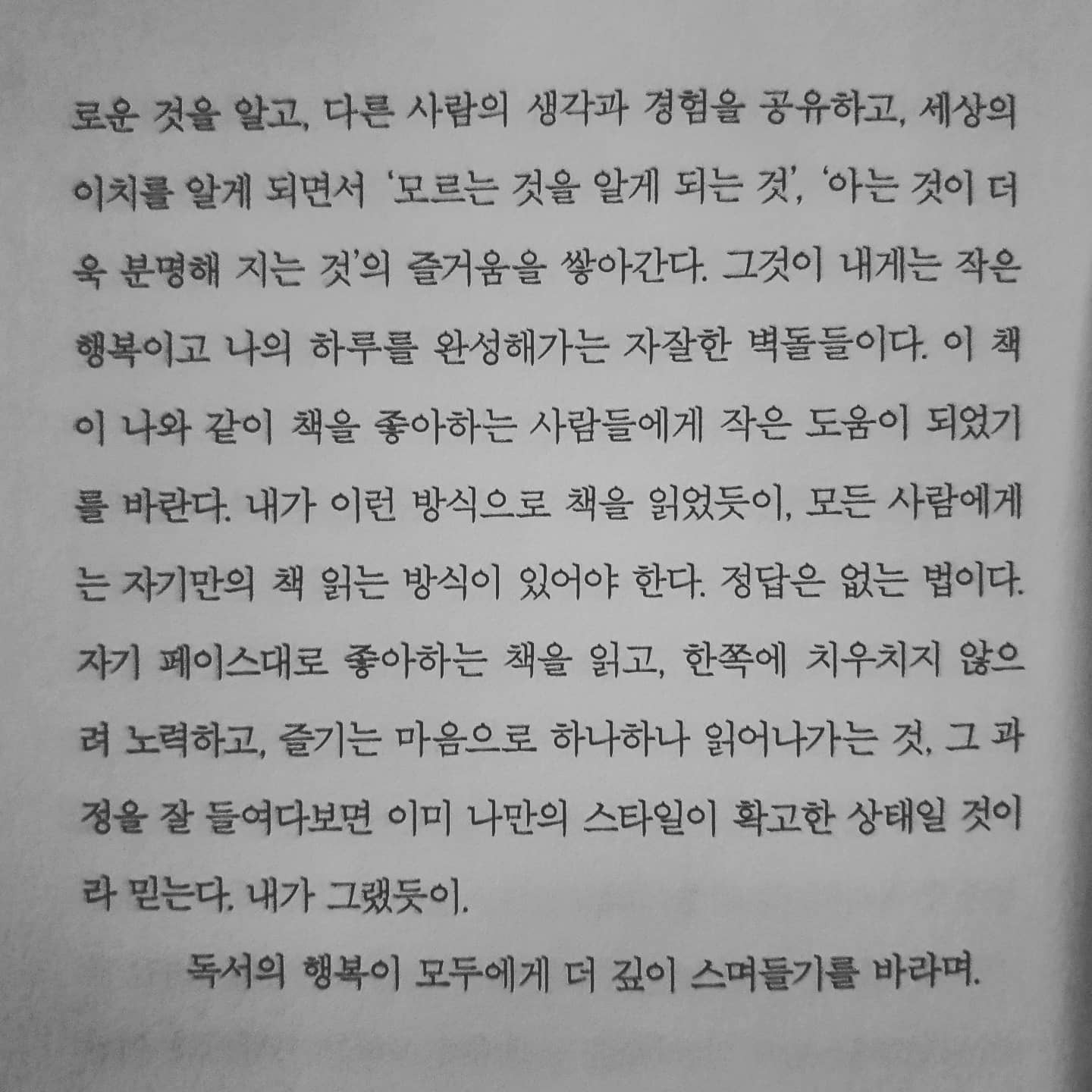 책을 통해 얻은 지식과 정보로 세상을 더 깊고 넓게 이해함으로써, 단단하고 흔들리지 않는 자아의 힘, 마음의 근육을 키우는 것이 책을 읽는 이유라고 말하는 작가는 책에 대한 모든 이야기를 진솔하면서도 유쾌하게 털어놓는다.