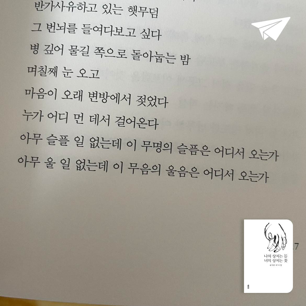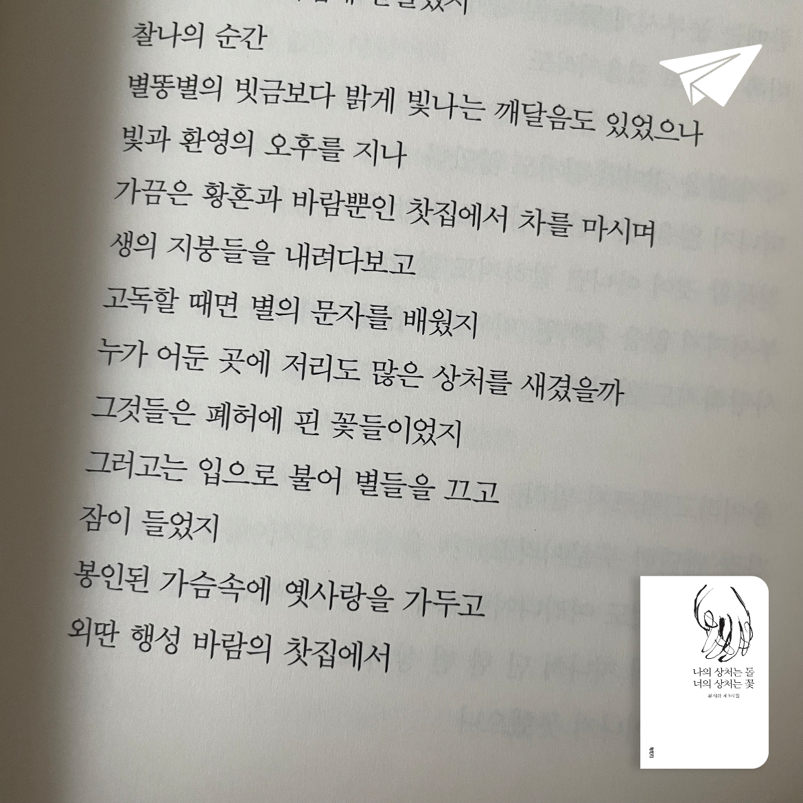 요약나의 상처는 돌 너의 상처는 꽃 : 류시화 제3시집은 류시화가 2015년 열림원에서 출간한 시집으로, 15년 만의 침묵을 깨고 펴낸 세 번째 작품이다(ISBN: 9788970639499). 📖 1991년 그대가 곁에 있어도 나는 그대가 그립다와 1997년 외눈박이 물고기의 사랑으로 대중적 사랑을 받은 류시화는, 이 시집에서 인도, 네팔 등 여행과 명상 속에서 길어 올린 깊은 성찰을 56편의 시로 담았다. 184쪽의 간결한 분량으로, 상처와 치유, 자