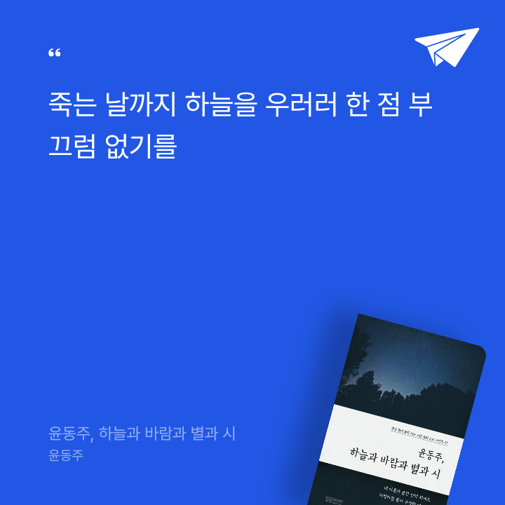 책의 시작을 여는 「서시」는 시인의 정체성을 가장 잘 보여줍니다. 죽는 날까지 하늘을 우러러 한 점 부끄러움이 없기를 소망했던 그는, 자신의 삶을 둘러싼 바