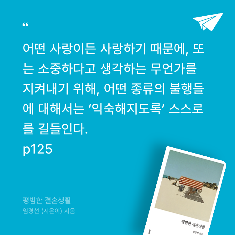 <가만히 부르는 이름> <태도에 관하여> <여자로 살아가는 우리들에게> 등 소설과 산문의 경계를 넘나들며 꾸준히 작품을 선보인 임경선 작가가 이번에는 '결혼생활'을 주제로 산문을 펴냈다.