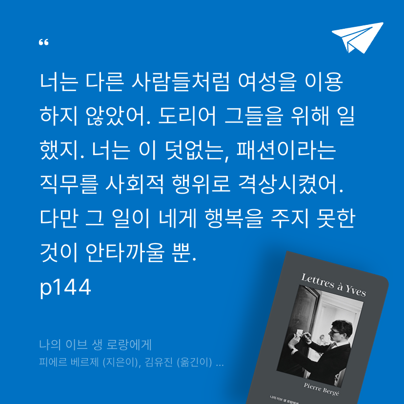 요약『나의 이브 생 로랑에게』는 피에르 베르제가 2010년에 출간한 『Lettres à Yves』의 한국어판으로, 김유진이 번역하여 2021년 2월 프란츠에서 출간되었다(ISBN 9791197325809). 📖 약 160페이지로 구성된 이 에세이는 YES24 리뷰 총점 9.5(66건), 판매지수 9,888을 기록하며, “50년 동반자의 사랑과 예술을 담은 애틋한 편지”로 평가받는다(). 1930년 프랑스 올레옹섬에서 태어난 피에르 베르제는 이브 생 로랑의 연인이자 사업 파트너로, 1961년