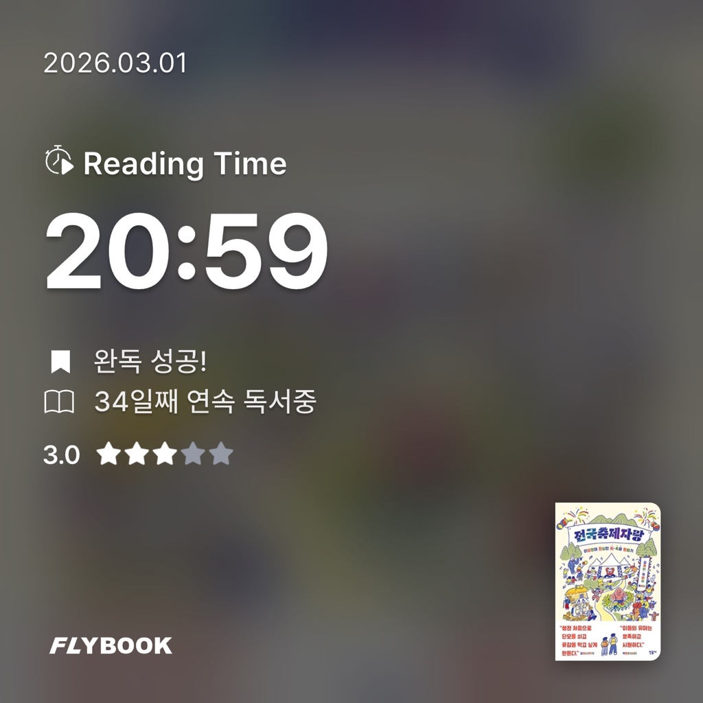 요약*전국축제자랑 (이상한데 진심인 K-축제 탐험기)*는 에세이스트 김혼비와 박태하 부부가 대한민국의 지역 축제 열두 곳을 탐방하며 기록한 독특한 여행 에세이다. 민음사의 2021년 출간작으로, 격월간 문학잡지 《릿터》에 연재된 내용을 보강해 단행본으로 엮었다. 이 책은 충남 예산의 의좋은형제축제부터 경남 산청의 지리산산청곶감축제까지, 수도권과 광역시, 제주도를 제외한 지역의 다채로운 축제를 소개한다. 김혼비와 박태하의 유머 넘치는 문체와 예리한 관찰력은 한국 특유의