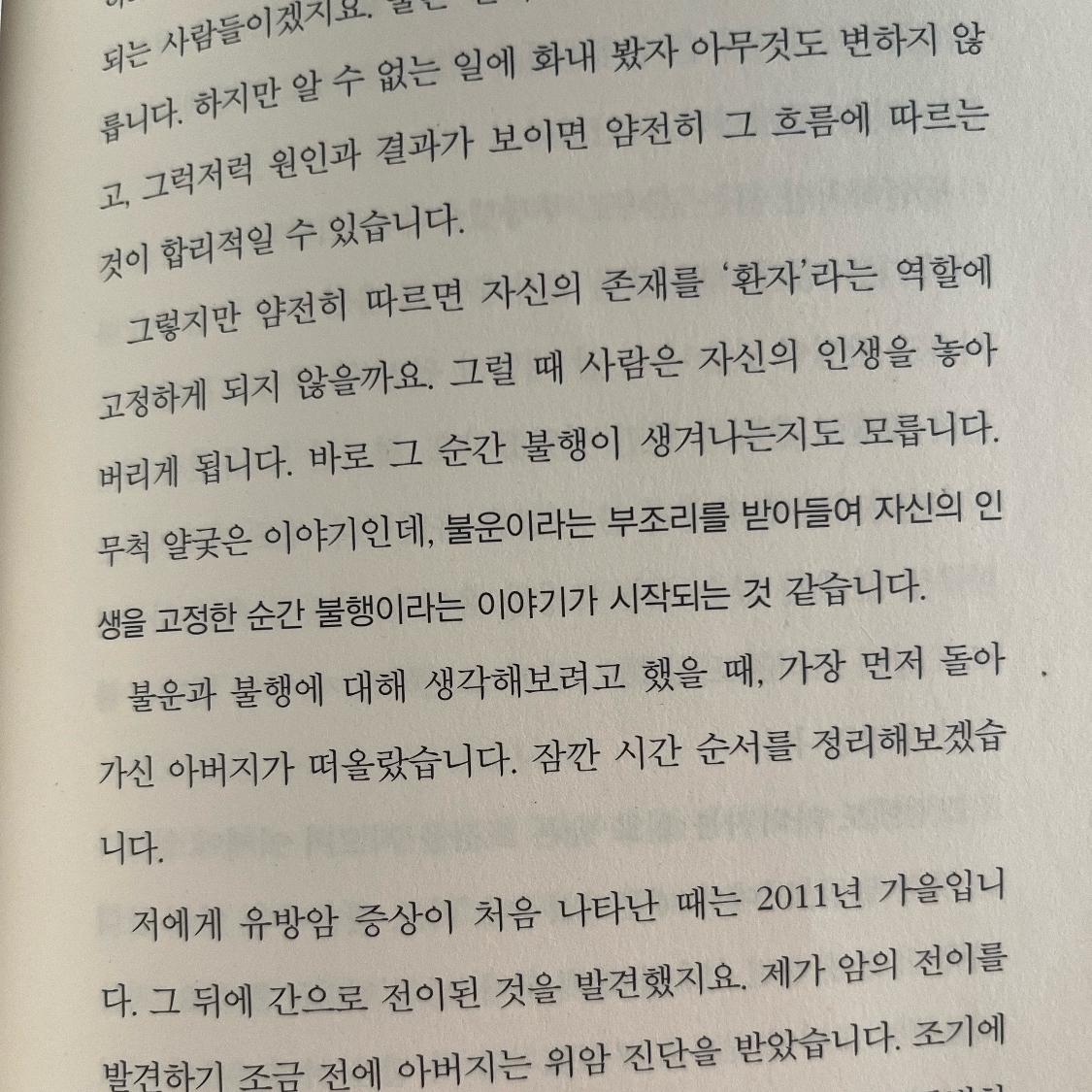 말기 암으로 죽음을 앞둔 철학자가 눈감기 직전까지 의료인류학자와 주고받은 편지를 엮은 책이다. 예고 없이 닥친 ‘질병’과 죽음의 의미를 자신의 전공 주제인 ‘우연’으로 해석하려 한 것이다.