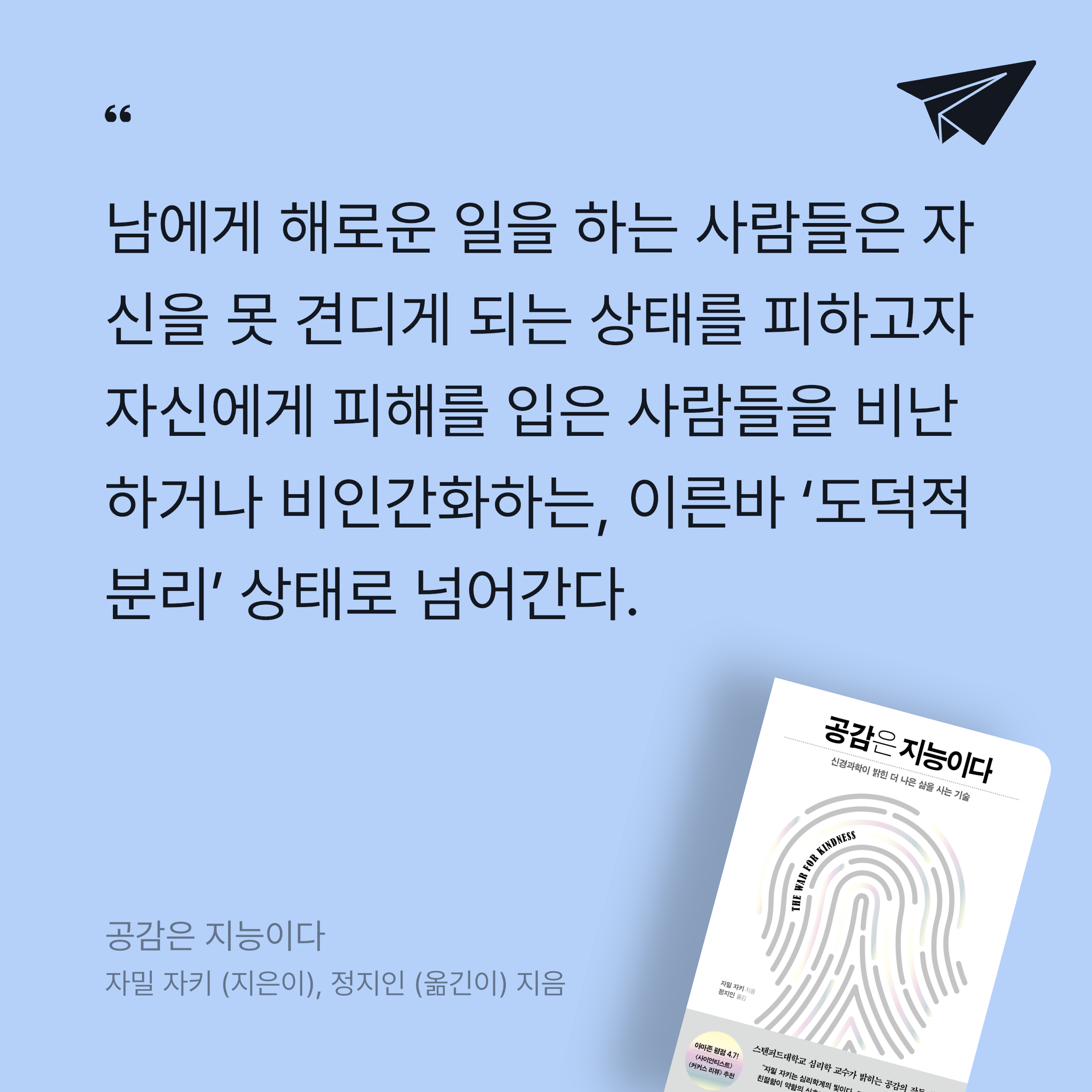 요약우리는 흔히 공감을 타고난 기질이나 성격의 일종으로 생각합니다. 누군가는 다정하고 공감 능력이 뛰어나며, 또 누군가는 차갑고 무심하게 태어났다고 믿는 것입니다. 하지만 스탠퍼드 대학교의 심리학자 자밀 자키는 이 책을 통해 공감이 고정된 성격이 아니라, 근육처럼 훈련하고 발전시킬 수 있는 일종의 ‘지능’이라고 단언합니다. 저자는 신경과학과 심리학의 최신 연구를 바탕으로 공감이 우리 뇌 속에서 어떻게 작동하는지, 그리고 왜 우리가 타인과 연결될 때 더 나은