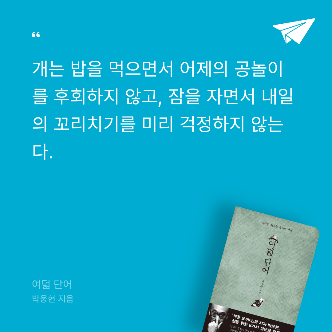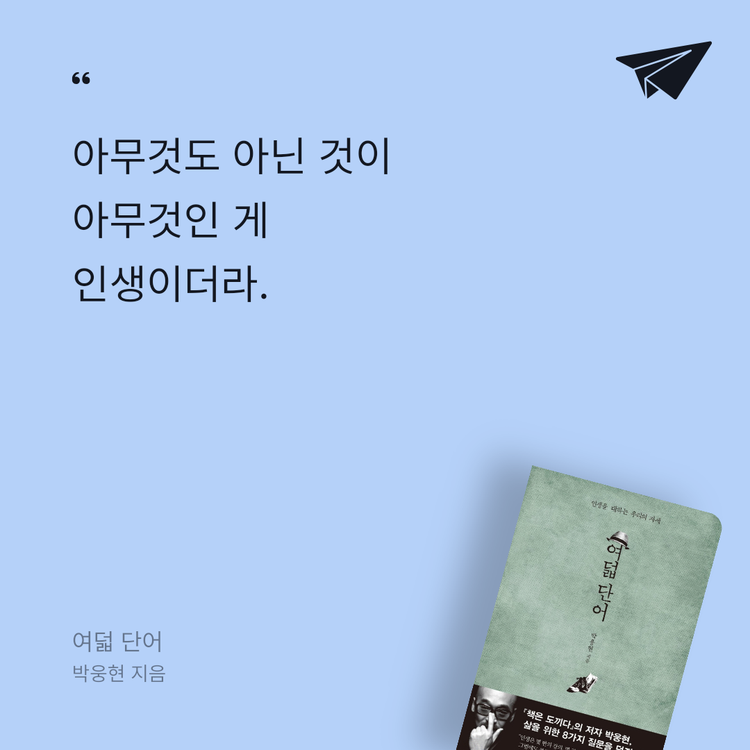 요약『여덟 단어 (인생을 대하는 우리의 자세)』는 대한민국을 대표하는 광고인 박웅현이 삶의 방향성을 고민하는 이들에게 전하는 따뜻하고 깊이 있는 메시지를 담은 책이다. 이 책은 2012년 저자가 이삼십 대 젊은이들과 함께한 강연을 바탕으로 쓰여졌으며, 인생을 대하는 태도를 여덟 가지 키워드로 풀어낸다. 그 키워드는 자존, 본질, 고전, 견(見), 현재, 권위, 소통, 인생이다. 각각의 단어는 독립적이면서도 서로 연결되어, 결국 “어떻게 살아갈 것인가”라는 큰 물음으로 수렴한다