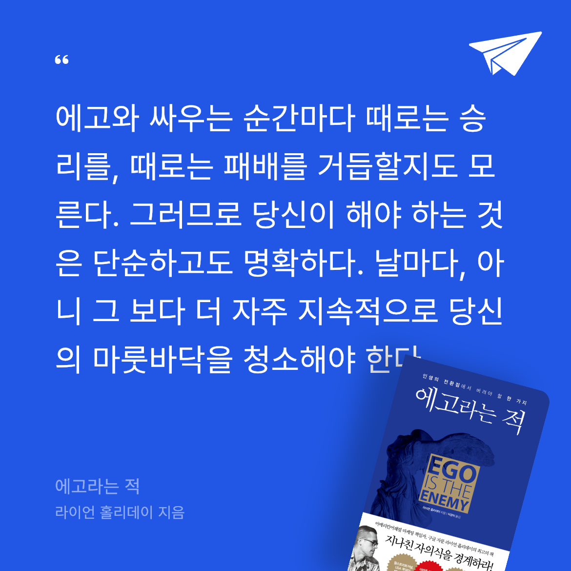 요약라이언 홀리데이의 에고라는 적은 2017년 흐름출판에서 출간된 자기계발서로, 저자가 화려한 성공과 쓰라린 실패를 경험하며 깨달은 삶의 통찰을 담은 작품이다. 📖 이 책은 에고(Ego), 즉 지나친 자아도취와 자만심이 인생의 중요한 전환점에서 어떻게 방해가 되는지를 탐구하며, 이를 내려놓는 법을 제안한다. 저자는 열아홉 살에 대학을 자퇴하고, 아메리칸어패럴의 마케팅 전략가로 승승장구하며 젊은 나이에 성공의 정점을 찍었다. 그러나 사업 실패와 멘토들의 몰락을