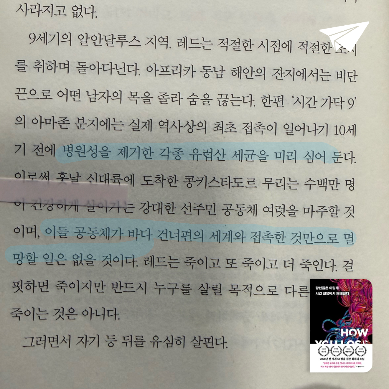적대적인 두 집단의 엘리트가 시간을 오가는 전쟁 속에서 비밀 편지를 주고받는다는 내용의 소설로, 상상을 초월하는 미래의 이야기를 '편지'라는 아날로그적 도구에 담아내는 독특한 설정과 상상도 못 한 반전 등 흥미로운 전개로 화제를 불러모은 작품이다.