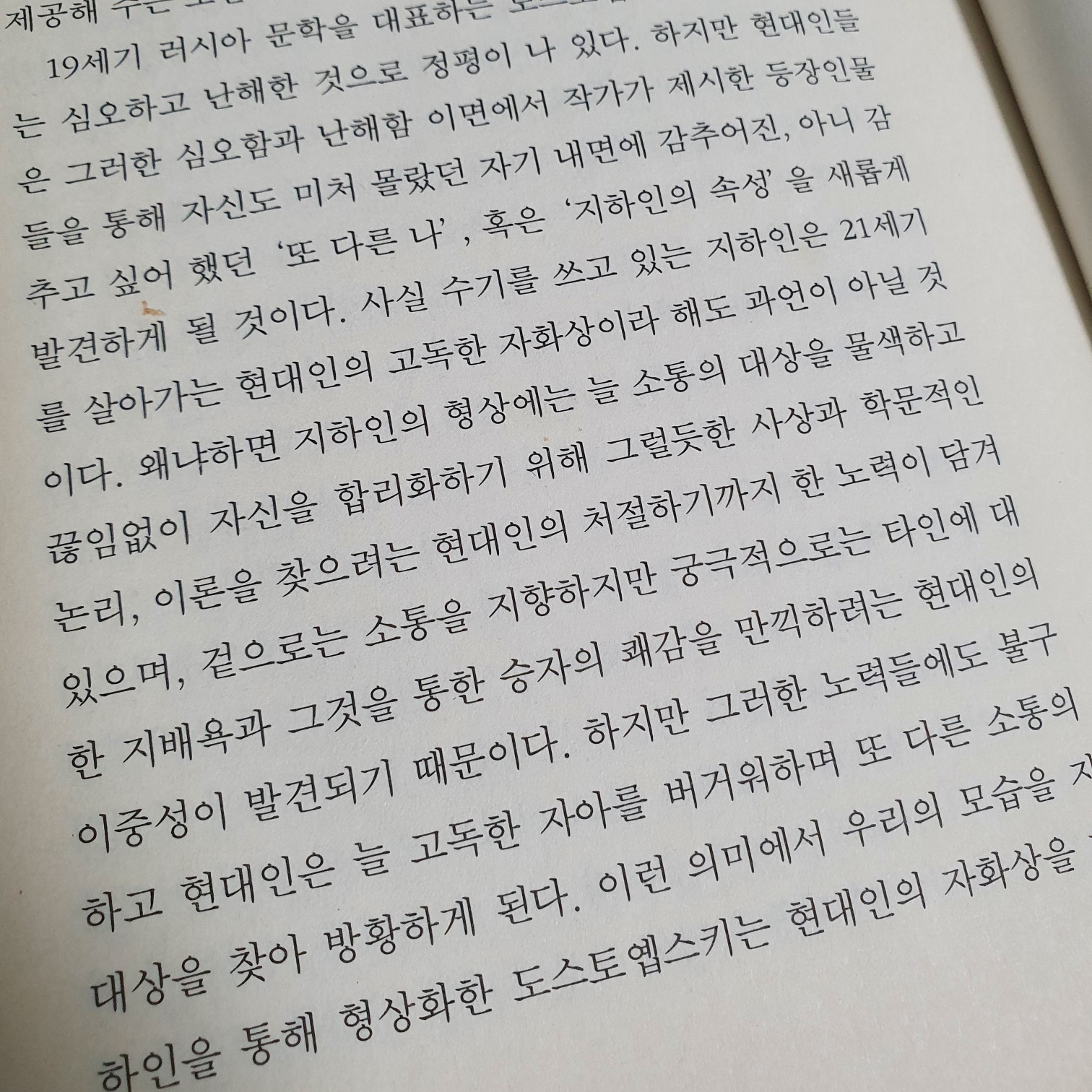 의식의 지하 세계에 살면서 냉소적이고 고립된 익명의 주인공이 두서없이 자신의 삶을 고백하는 작품으로, 앙드레 지드가 '도스토옙스키의 전 작품을 이해할 수 있는 열쇠'라고 칭한 바 있다. 1인칭 서술로 진행되는 수기 형식으로, 주인공은 자의식에 가득 차 있는 상태에서 자신에게 말을 걸고 그것에 대해 스스로 답한다.