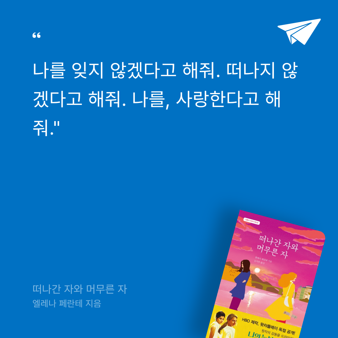 전 세계를 강타한 베스트셀러 작가 엘레나 페란테의 '나폴리 4부작' 제3권 <떠나간 자와 머무른 자>는 청춘의 끝자락에서 펼쳐지는 본능적이고 호소력 있는 이야기다. 중년기에 접어든 두 주인공은 결혼과 출산, 육아를 경험하며 각자의 삶을 살아간다.