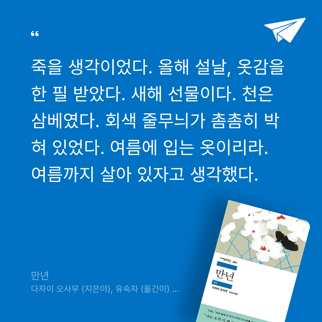 다자이 오사무의 첫 창작집 『만년』이 민음사 세계문학전집 382번으로 출간되었다. 1997년 소화출판사에서 같은 역자가 문고본로 출간했던 것을 이십사 년 만에 완역했고 기존 번역도 전면적으로 손보았다.