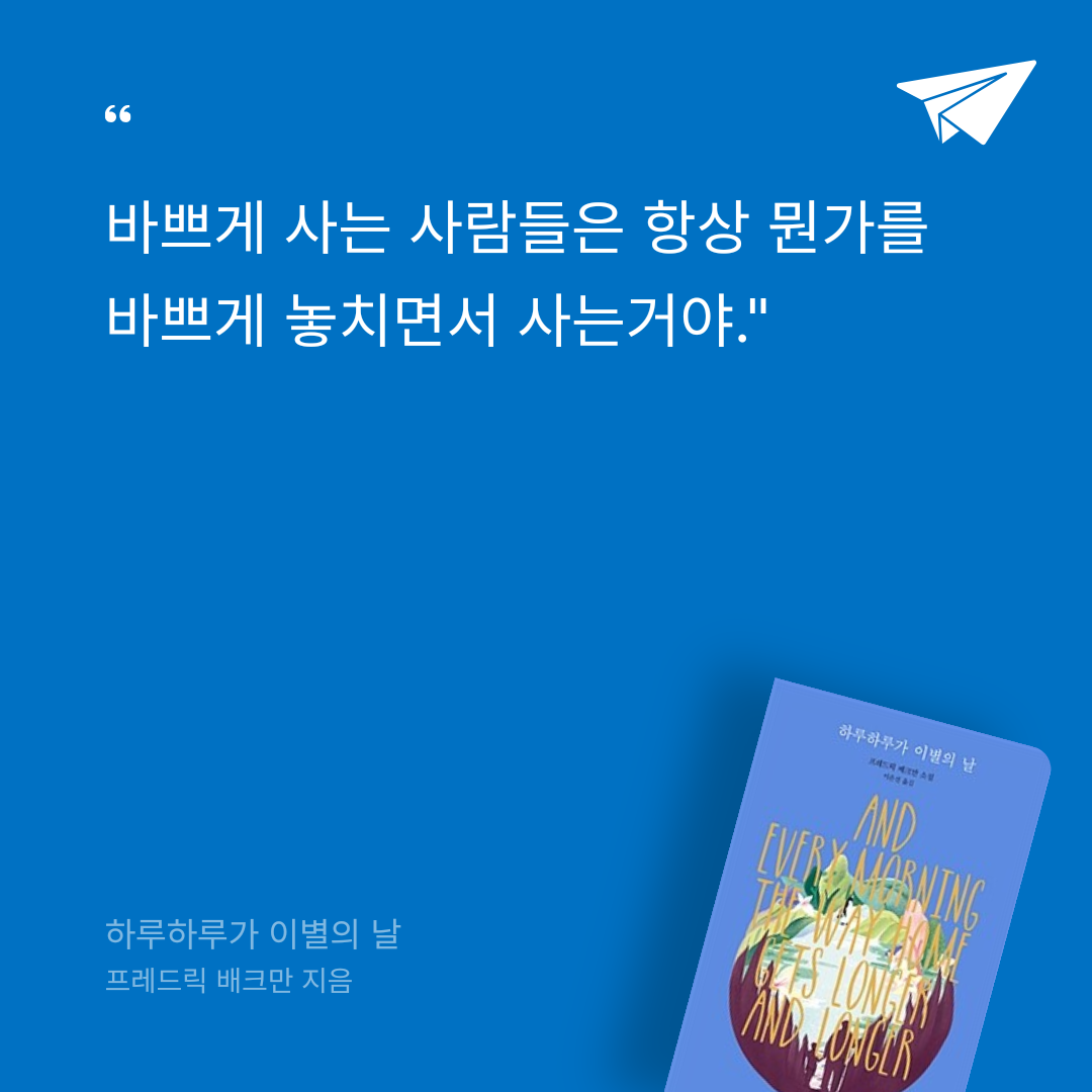 <오베라는 남자>, <할머니가 미안하다고 전해달랬어요> 작가 프레드릭 배크만의 장편소설. 삶의 어느 한 순간이 끊임없이 재생되고, 현재가 녹아내리며, 완전히 놓아버릴 때까지, 기억을 잃어가는 노인과 천천히 헤어짐을 배워가는 가족의 이별 이야기이다.