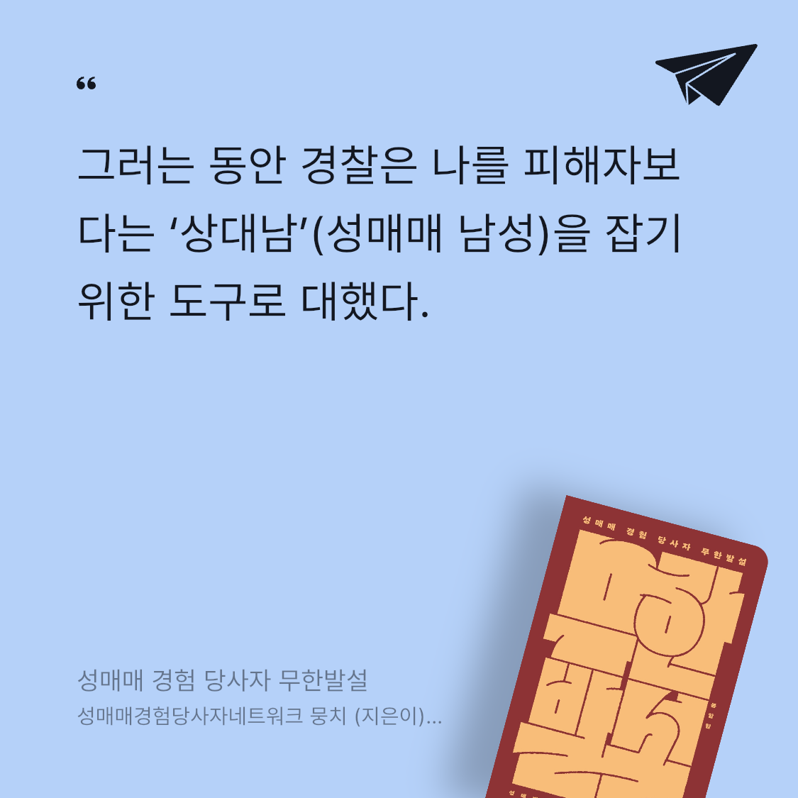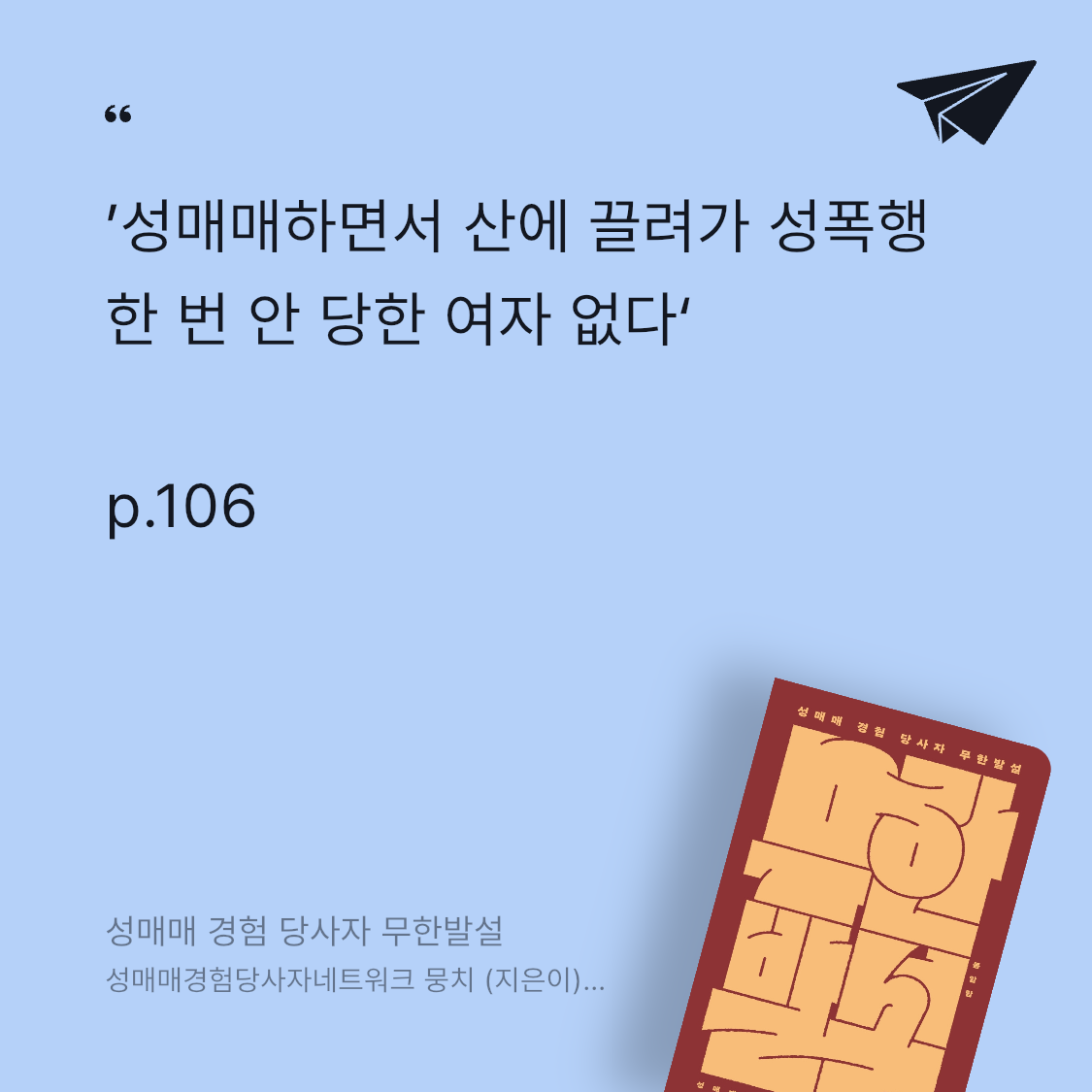 요약성매매 경험 당사자 무한발설은 성매매경험당사자네트워크 뭉치가 2021년 봄알람에서 출간한 사회과학 에세이로, 성매매 경험 당사자들의 목소리를 통해 한국 사회의 성매매 현실과 차별을 고발하는 강렬한 작품이다. 📖 ‘뭉치’는 2006년 전국 성매매 경험 당사자들이 모여 결성한 네트워크로, 2010년부터 성매매 현장의 실태를 알리고, 2019년부터는 해외 당사자들과 연대하며 활동을 이어왔다. 이 책은 “우리의 존재가 실천이다”라는 모토 아래, 성매매를 피해자