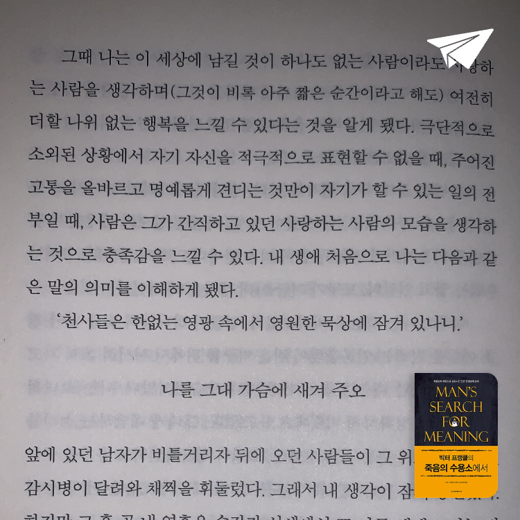 20세기를 대표하는 사상가이자 정신 의학자인 빅터 프랭클의 자전적인 에세이. 나치 강제 수용소에서 겪은 참혹한 고통을 건조하고 담담한 시선으로 술회한다.