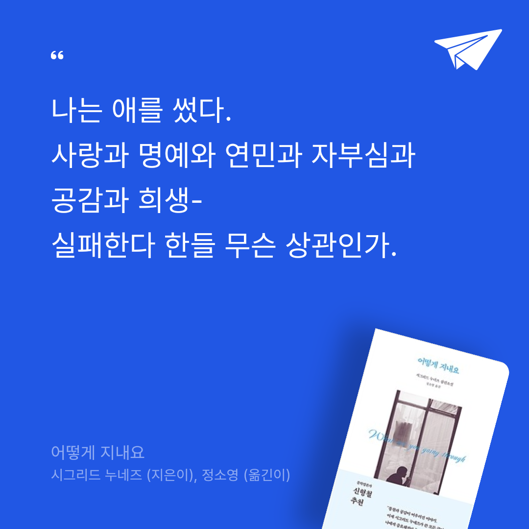 요약『어떻게 지내요』는 시그리드 누네즈가 지은 장편소설로, 정소영이 번역하여 2021년 8월 엘리에서 출간되었다. ISBN 9791191247114를 통해 기록된 이 작품은 약 260페이지로 구성되며, YES24 리뷰 총점 9.6(129건)을 기록하고 2021년 가디언, NPR, 오프라 매거진 등에서 올해의 책으로 선정되었다(). 1951년 뉴욕에서 독일인 어머니와 중국계 파나마인 아버지 사이에서 태어난 누네즈는 컬럼비아 대학에서 순수예술 석사 학위를 취득하고, 2018년 『친구』로 전미도서상을 수상하