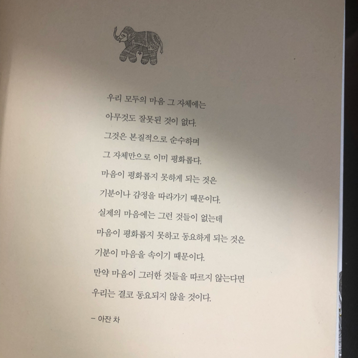 요약『술 취한 코끼리 길들이기 (마음속 108마리 코끼리 이야기)』는 케임브리지 대학 출신의 승려 아잔 브라흐마가 쓴 에세이로, 불교 수행을 통해 얻은 깨달음을 108가지 짧은 이야기로 풀어낸 책이다. 🌿 저자는 이론물리학을 전공한 학자에서 태국 밀림의 수행승으로 변신한 독특한 이력을 지녔다. 책의 시작은 한 여행자가 갠지스 강가에서 코끼리를 길들이는 광경을 보고 마음을 다스리는 길로 들어선 일화에서 비롯된다. 이 코끼리는 우리의 내면에 존재하는 분노,