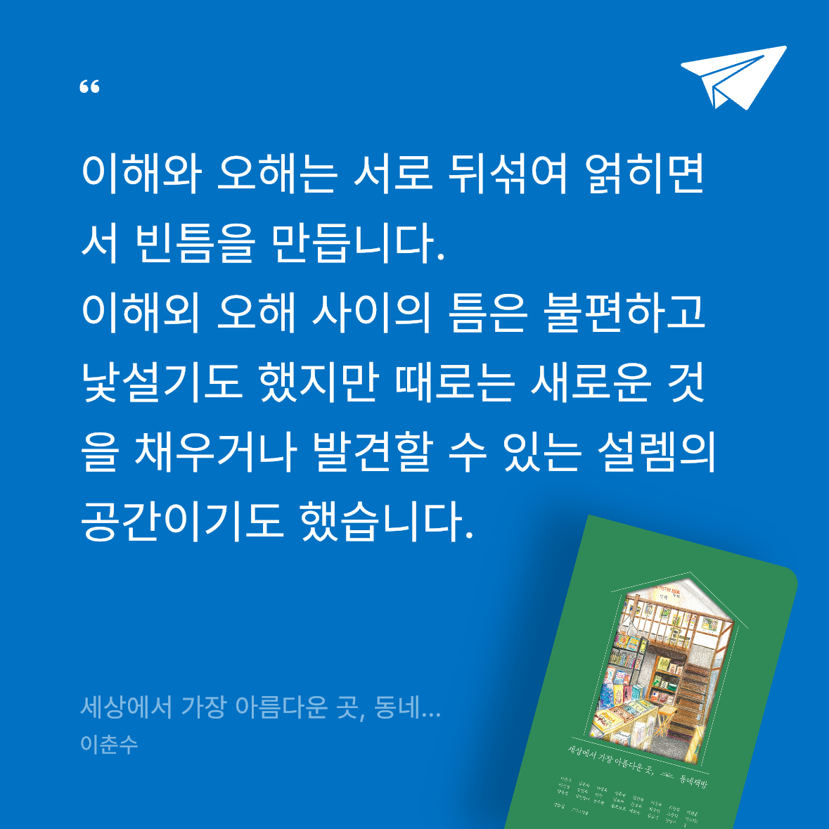 요약‘세상에서 가장 아름다운 곳, 동네책방’은 사계절출판사 창립 40주년을 기념해 2022년 4월 25일 출간된 에세이집으로, 23명의 동네책방 대표와 사계절출판사 강맑실 대표가 함께 엮은 책이다. 📖 ISBN 9791160949148로 등록된 이 책은 동네책방의 소소한 일상과 책을 통해 사람, 골목, 지역을 잇는 이야기를 담는다. 강맑실 대표는 2021년 첫 에세이 ‘막내의 뜰’ 출간 후 동네책방들과의 만남을 계기로 이 프로젝트를 기획, 책방지기들의 글과 자신의 그림을 더해