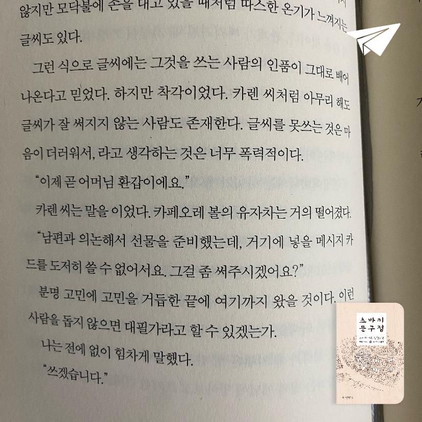 요약오가와 이토의 츠바키 문구점은 2017년 예담에서 출간된 장편소설로, 일본 가마쿠라를 배경으로 한 따뜻한 힐링 소설이다. 📖 주인공 아메미야 하토코, 애칭으로 포포는 20대 후반 여성으로, 에도 시대부터 여성 서사들이 대필업을 이어온 츠바키 문구점을 11대째 잇는다. 이곳은 겉보기엔 문구류를 파는 평범한 가게지만, 사실은 손님의 마음을 담은 편지를 대신 써주는 대필 전문점이다. 포포는 어린 시절 할머니(선대)에게 엄격한 대필 훈련을 받으며 자랐다. 할머니의 까다로운 교