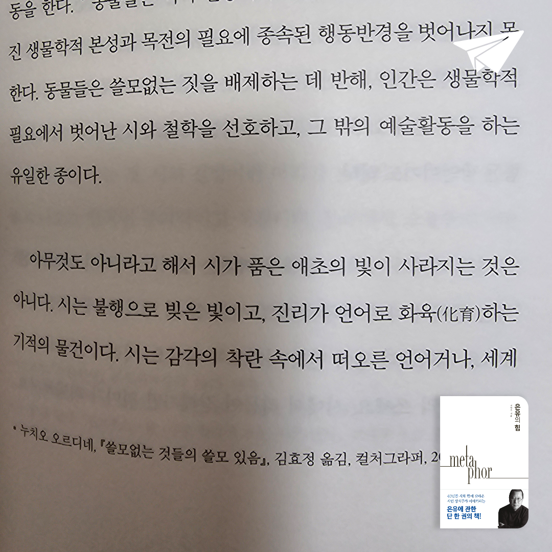 요약『은유의 힘』은 시인이자 문학평론가 장석주가 2018년 다산책방에서 출간한 인문 에세이로, 은유의 본질과 그 언어적·문화적·철학적 힘을 탐구한다(ISBN: 9791130613543). 📖 장석주는 한국 현대문학을 대표하는 지성으로, 『시적 인간』, 『문학의 숲을 거닐다』 등으로 문학과 삶의 깊은 통찰을 제시해왔다. 이 책에서 그는 은유를 단순한 수사법이 아닌, 인간의 사고와 감정을 확장하고 세계를 새롭게 이해하는 강력한 도구로 정의한다. 고대 그리스의 아리스토텔레스부터 현대의 레이코프와 존슨까지, 은