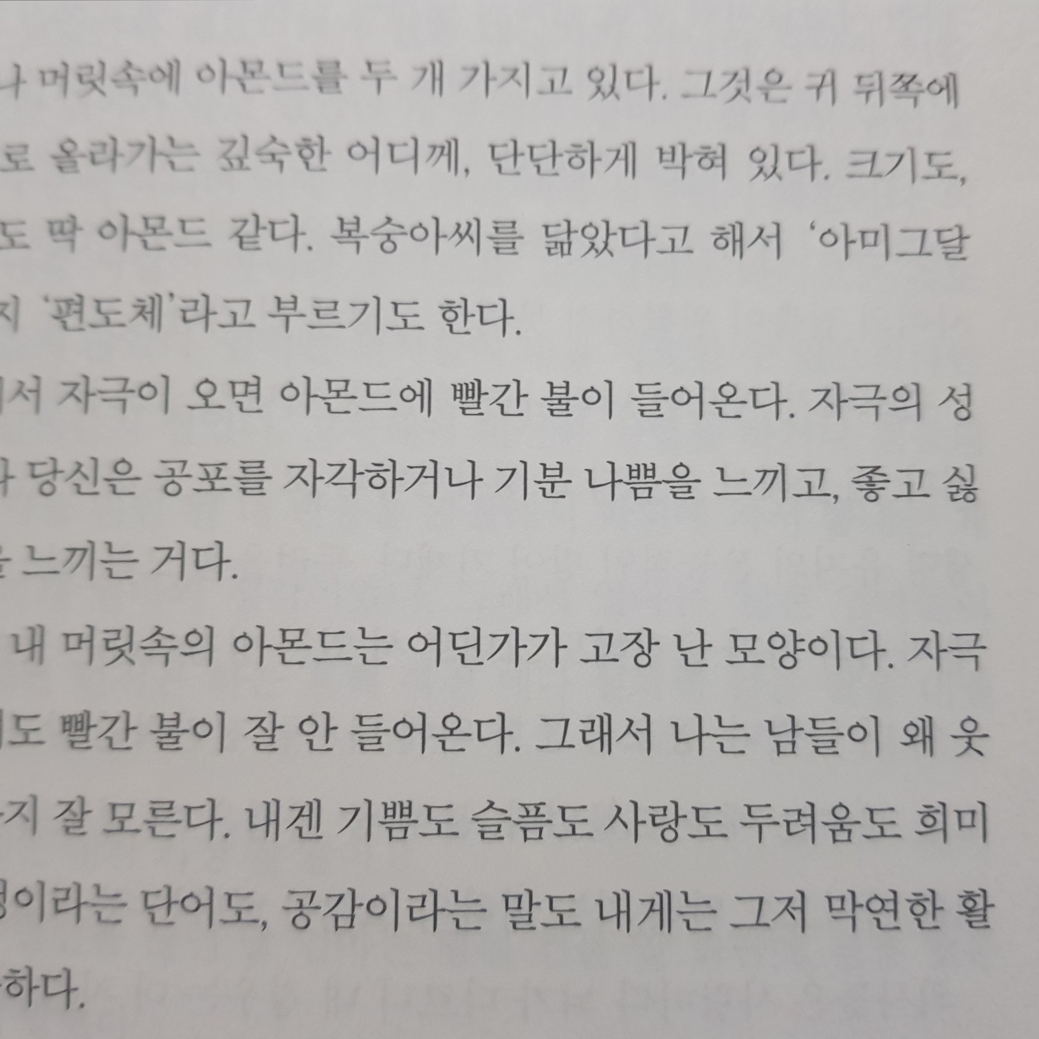 요약손원평의 아몬드는 2017년 창비에서 출간된 청소년 장편소설로, 제10회 창비청소년문학상을 수상한 작품이다. 📖 이 소설은 감정을 느끼지 못하는 소년 선윤재의 특별한 성장 이야기를 중심으로, 공감과 인간관계의 의미를 탐구한다. 주인공 윤재는 열여섯 살로, ‘감정표현불능증’(알렉시티미아)을 앓고 있다. 그의 뇌 속 편도체, 즉 ‘아몬드’라 불리는 부분이 작아 분노, 공포, 슬픔 같은 감정을 느끼지 못한다. 엄마와 할머니의 헌신적인 사랑 덕에 그는 큰 문제 없이