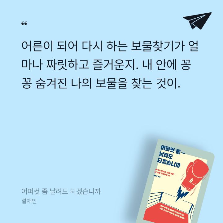 요약『어퍼컷 좀 날려도 되겠습니까: 공격과 방어를 통해 배운 내 삶을 존중하는 법』은 설재인이 2019년 11월 30일 웨일북에서 출간한 에세이로, 복싱을 통해 발견한 삶의 가치와 자존감을 진솔하게 풀어낸 작품이다(ISBN: 9791190313117). 📖 256쪽 분량의 이 책은 YES24 에세이 분야에서 리뷰 평점 9.2를 기록하며, tvN ‘유퀴즈 온 더 블록’ 출연으로 화제를 모은 저자의 5년간 복싱 여정을 중심으로 독자들에게 공