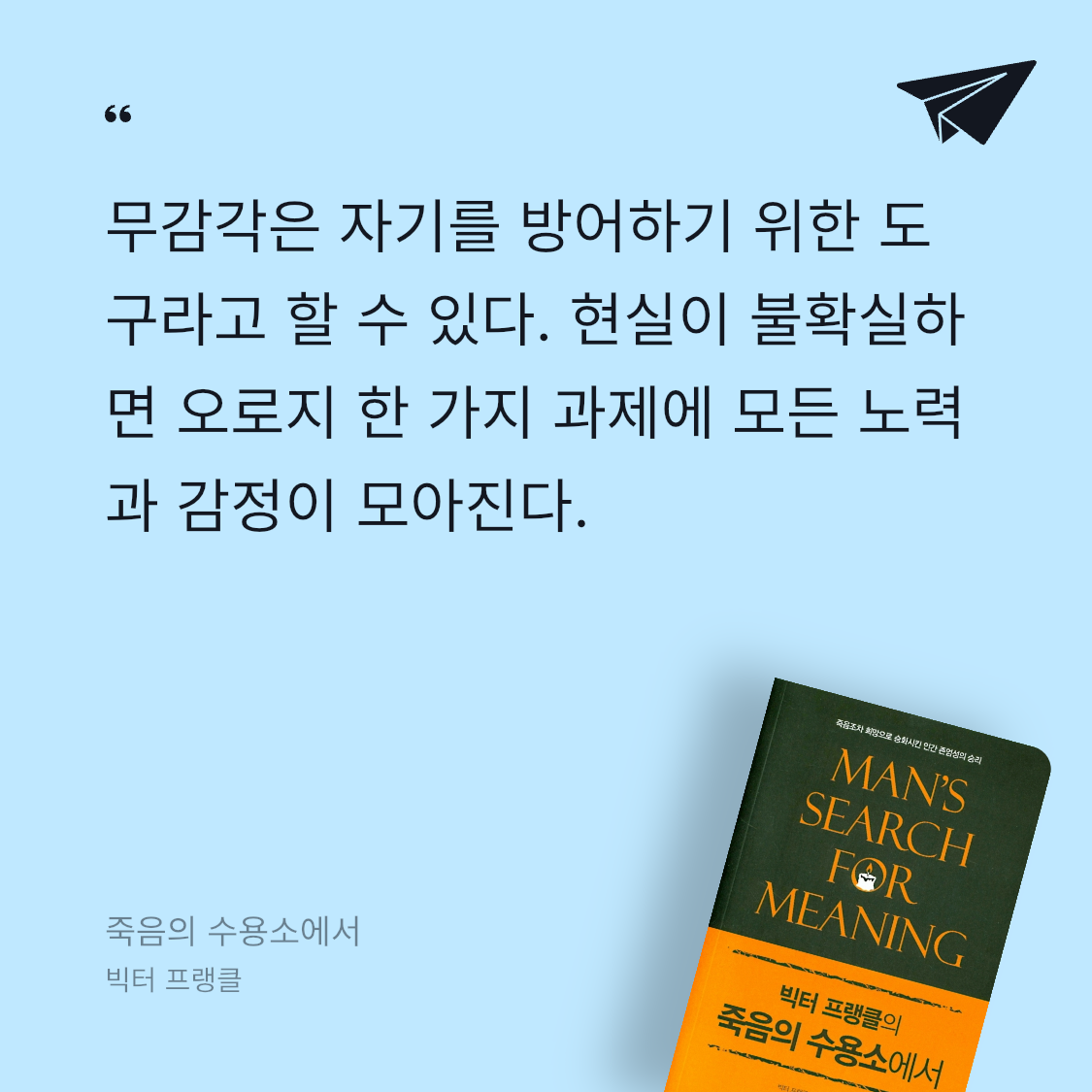 나치가 만든 강제 수용소에 갇혀 있었던 정신의학과 의사가 인간의 삶과 정신세계에 대해 탐구한 내용을 담은 에세이. 절망으로 가득찬 환경에서도 끊임없이 삶의 의미를 추구하고 인간의 선한 본성을 믿는 것이 어떻게 가능한 것일까?