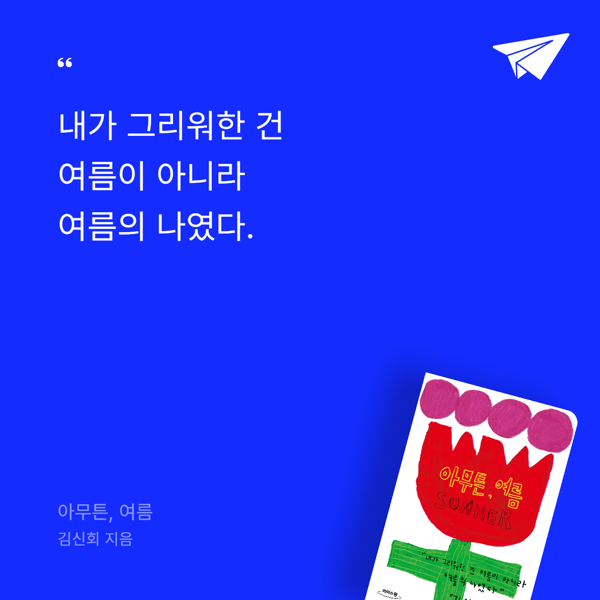 <보노보노처럼 살다니 다행이야> <아무것도 안 해도 아무렇지 않구나> 등으로 많은 독자의 공감을 불러일으킨 김신회 작가의 신작으로, 1년 내내 여름만 기다리며 사는 그가 마치 여름에게 보내는 러브레터처럼 때로는 수줍게 때로는 뜨겁게 써내려간 스물두 편의 에세이가 실려 있다.