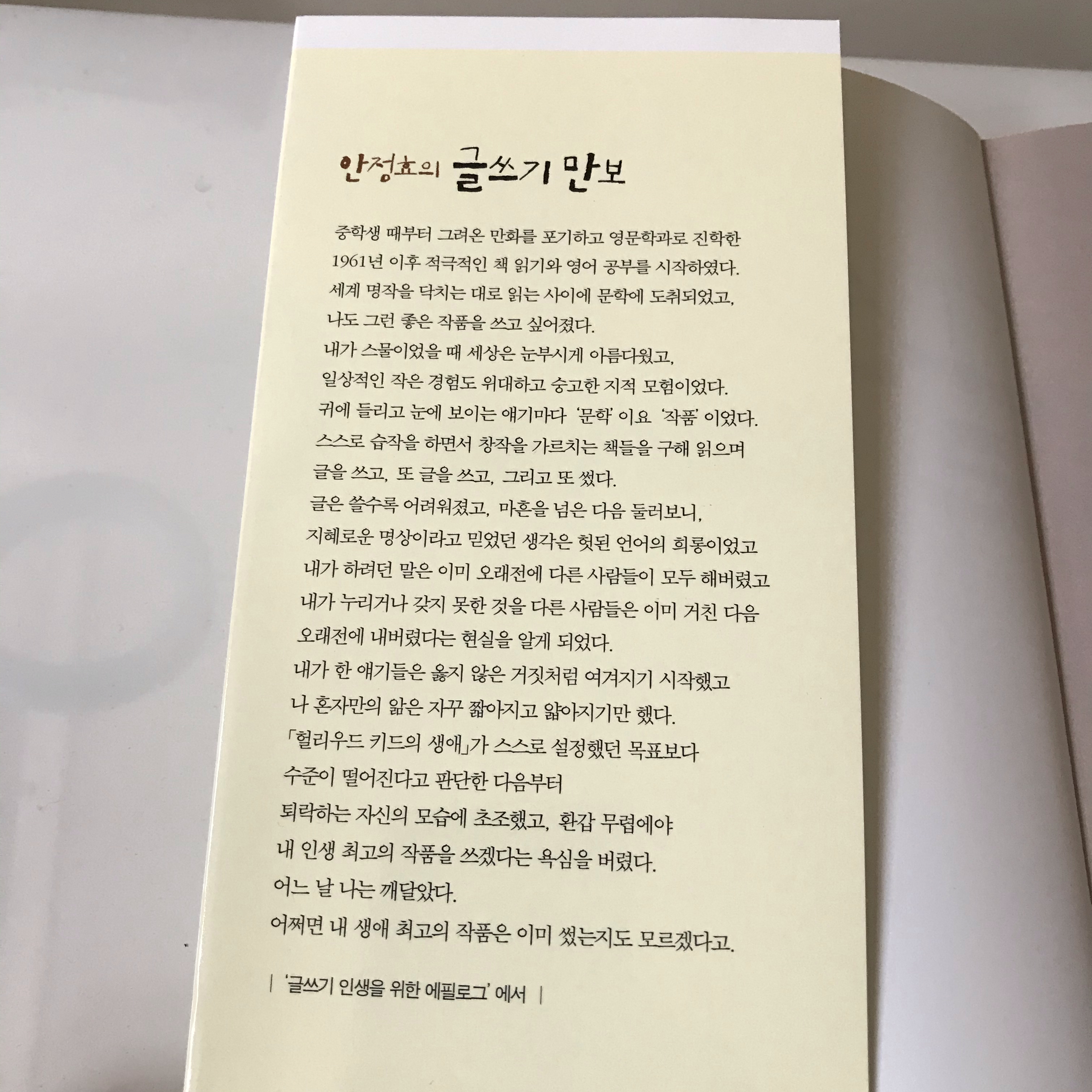 소설가이자 번역가인 안정효가 40여 년의 글쓰기 인생에서 얻은 깨달음과 창작 기술을 정리해 책으로 펴냈다. 일기, 독후감, 자서전, 소설 쓰기 등의 과제를 주면서, 독자가 직접 체험을 통해 글쓰기 원칙과 요령들을 습득할 수 있도록 안내한다. 창작과 출판의 전 과정과 작가의 개인적인 삶에 대한 이야기도 함께 실렸다.