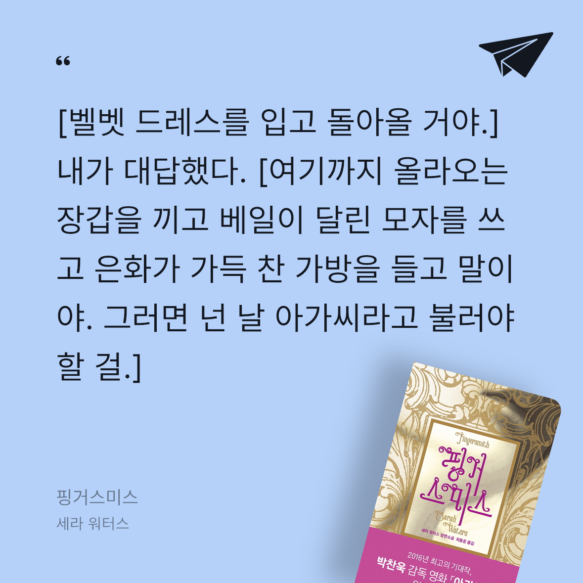 요약19세기 런던의 어두운 뒷골목, 소매치기들의 소굴에서 자라난 고아 소녀 수 트린디는 '젠틀먼'이라 불리는 사기꾼과 거대한 계획을 세우게 됩니다. 그 계획의 목표는 시골의 외딴 저택에 사는 상속녀 모드 릴리를 속여 그녀의 막대한 유산을 가로채는 것입니다. 수는 모드의 하녀로 들어가 그녀의 환심을 사고, 젠틀먼과 결혼하게 만들어 정신병원에 가두어 버릴 치밀한 음모를 실행에 옮깁니다. 🕵️♀️