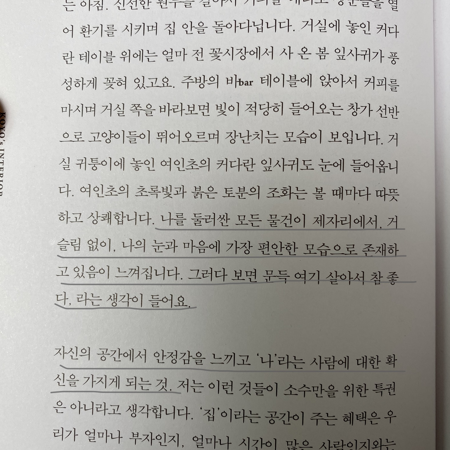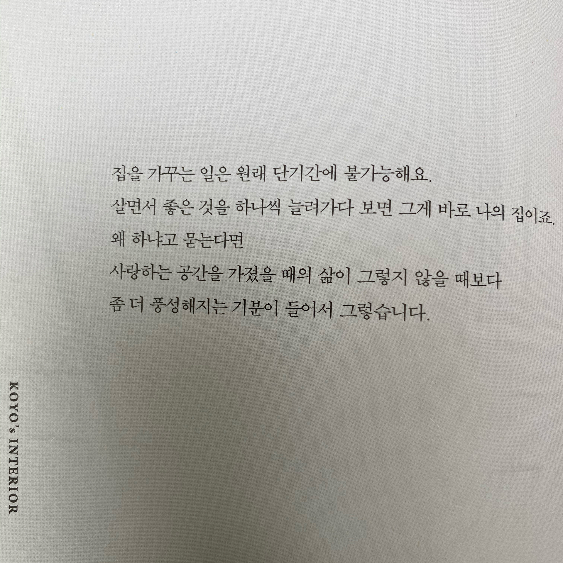 요약🏠 우리는 하루의 대부분을 집이라는 공간에서 보냅니다. 하지만 과연 그곳이 나를 온전히 이해하고 쉬게 해주는 공간인지 묻는다면 선뜻 대답하기 어려울 때가 많습니다. 공간 디렉터 최고요는 이 책을 통해 단순히 집을 예쁘게 꾸미는 기술을 넘어, 나라는 사람의 취향과 라이프스타일을 공간에 투영하는 법을 이야기합니다. 그녀는 인테리어가 단순히 가구를 배치하거나 벽지를 바꾸는 작업이 아니라, 내 삶의 방식을 정의하고 나를 더 잘 돌보기 위한 정성스러운