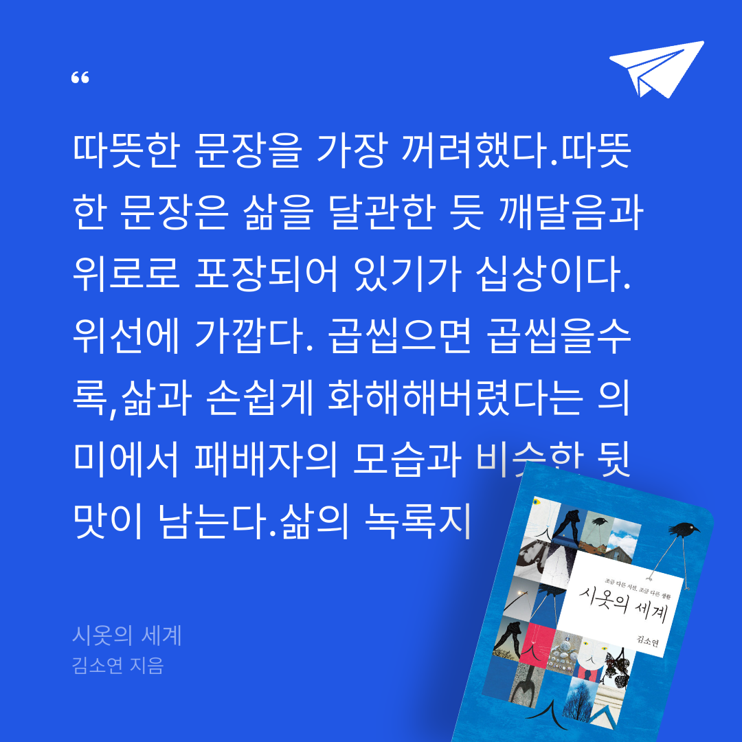 요약『시옷의 세계 (큰글자도서) (조금 다른 시선, 조금 다른 생활)』은 김소연이 2012년 11월 10일 마음산책에서 출간한 에세이로, ‘시옷(ㅅ)’으로 시작하는 35개의 낱말을 화두로 삶의 소소한 순간과 깊은 성찰을 풀어낸 작품이다(ISBN: 9788960907546). 📖 208쪽 분량의 이 책은 YES24 에세이 분야에서 리뷰 평점 9.3을 기록하며, 『마음사전』으로 공감을 얻은 김소연의 두 번째 사전 형식 에세이로 주목받았다(). 김소연은 시